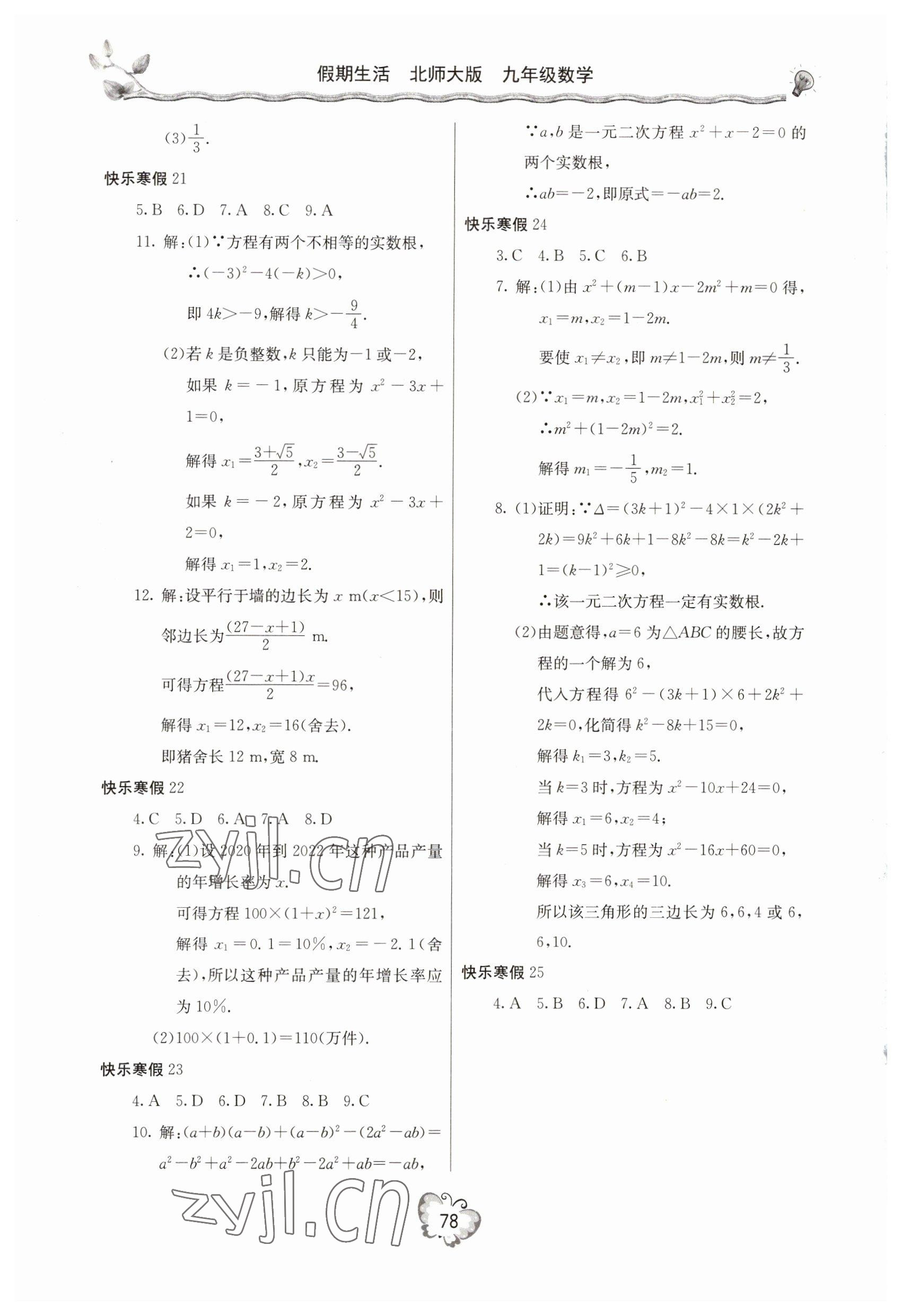 2023年新课堂假期生活寒假用书九年级数学北师大版北京教育出版社