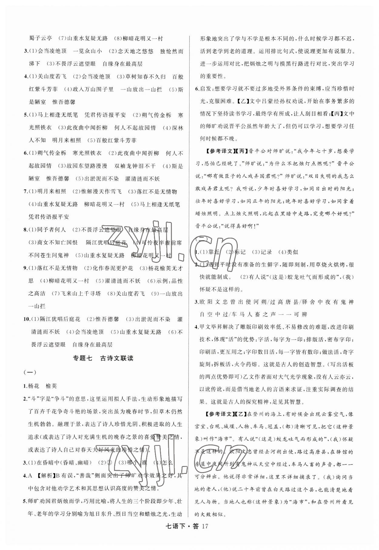 注:目前有些书本章节名称可能整理的还不是很完善,但都是按照顺序排列的,请同学们按照顺序仔细查找。练习册 2023年名师面对面满分特训方案七年级语文下册人教版 答案主要是用来给同学们做完题方便对答案用的,请勿直接抄袭。