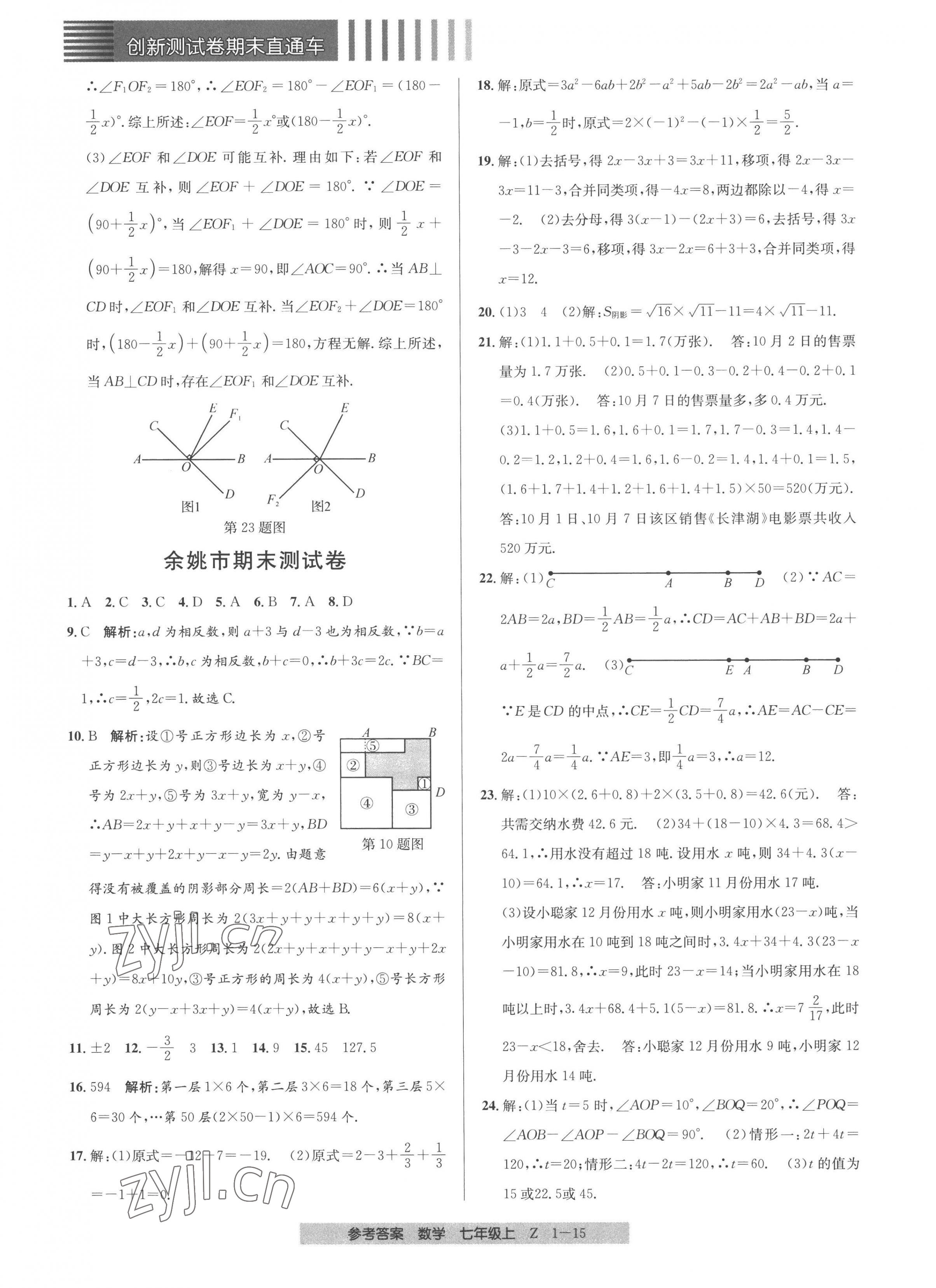 注:目前有些书本章节名称可能整理的还不是很完善,但都是按照顺序排列的,请同学们按照顺序仔细查找。练习册 2022年创新测试卷期末直通车七年级数学上册浙教版 答案主要是用来给同学们做完题方便对答案用的,请勿直接抄袭。
