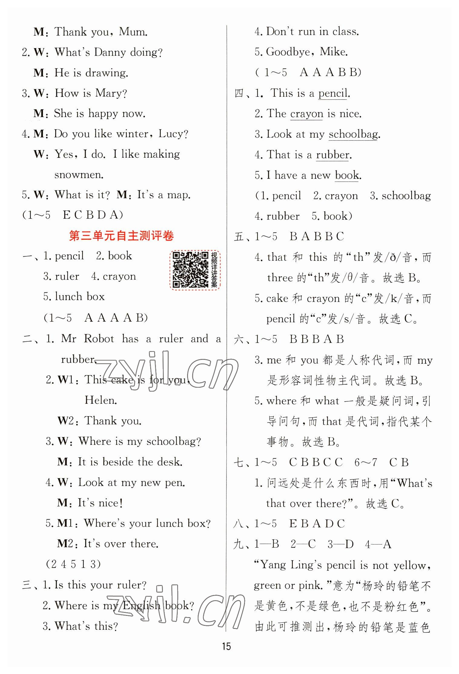 注:目前有些书本章节名称可能整理的还不是很完善,但都是按照顺序排列的,请同学们按照顺序仔细查找。练习册 2023年实验班提优训练三年级英语下册译林版江苏专版 答案主要是用来给同学们做完题方便对答案用的,请勿直接抄袭。