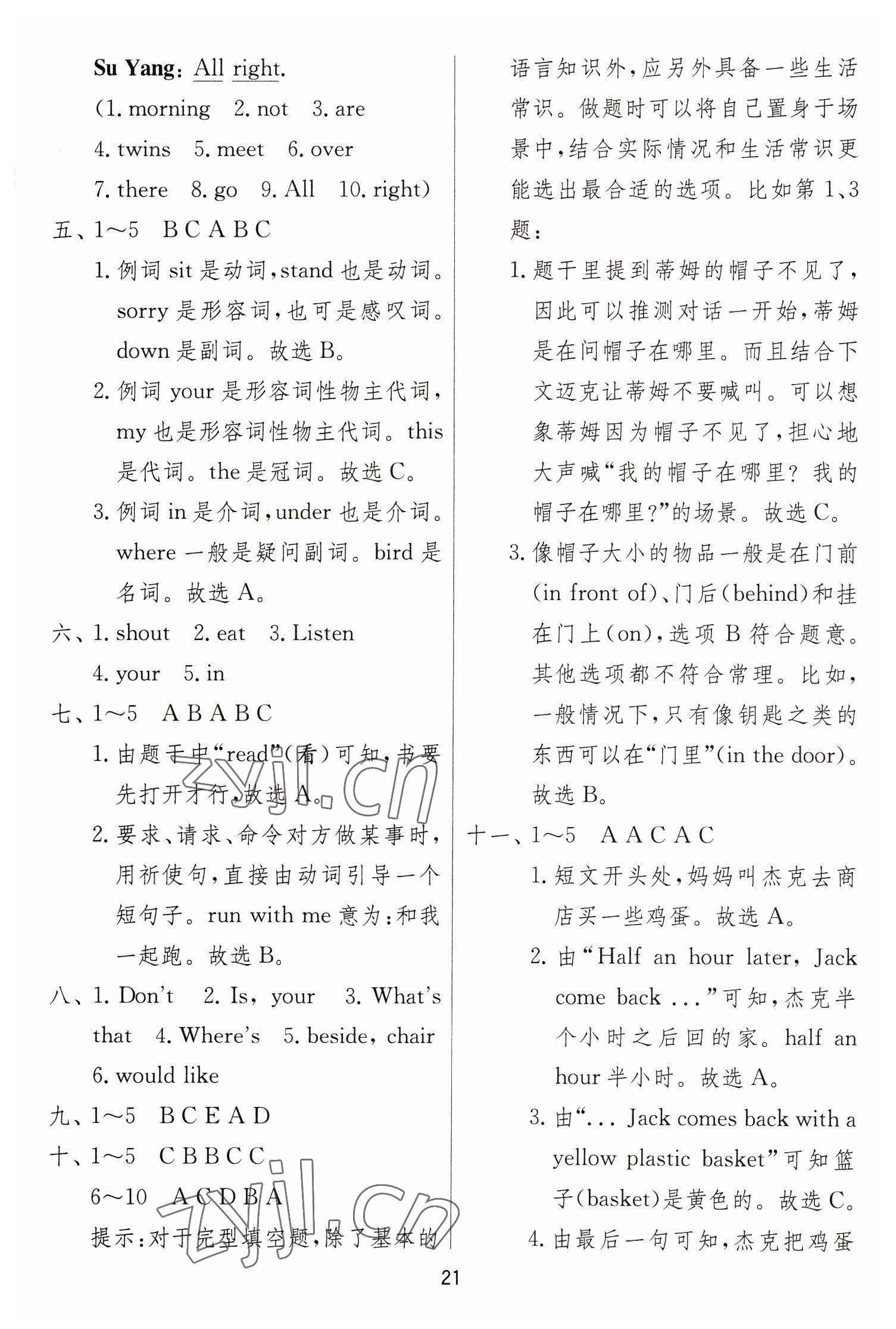 注:目前有些书本章节名称可能整理的还不是很完善,但都是按照顺序排列的,请同学们按照顺序仔细查找。练习册 2023年实验班提优训练三年级英语下册译林版江苏专版 答案主要是用来给同学们做完题方便对答案用的,请勿直接抄袭。