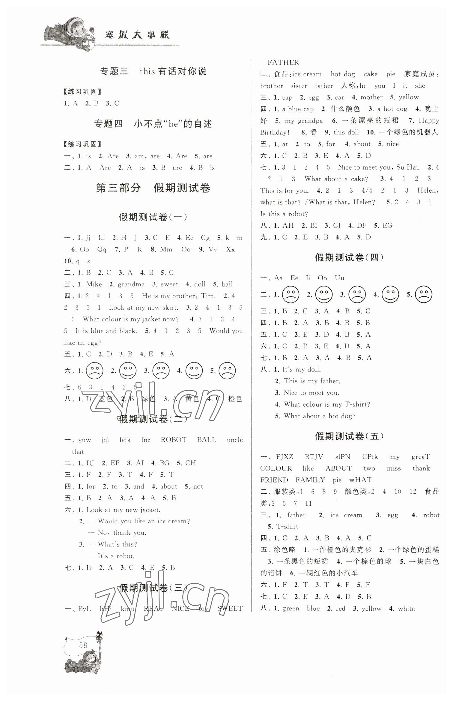 《2023年寒假大串联黄山书社三年级英语译林版》