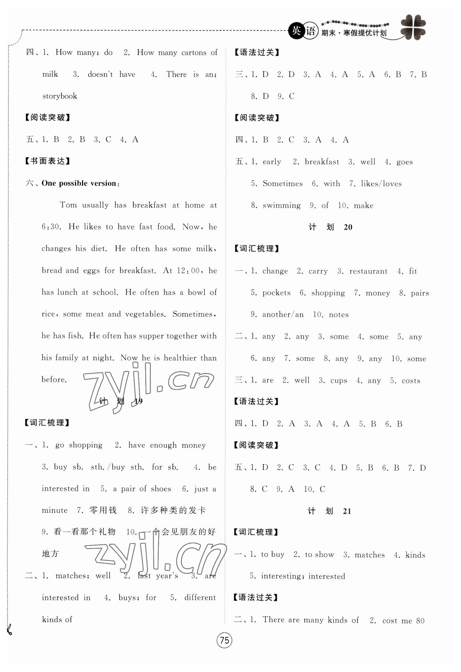 注:目前有些书本章节名称可能整理的还不是很完善,但都是按照顺序排列的,请同学们按照顺序仔细查找。练习册 2023年期末寒假提优计划七年级英语译林版 答案主要是用来给同学们做完题方便对答案用的,请勿直接抄袭。