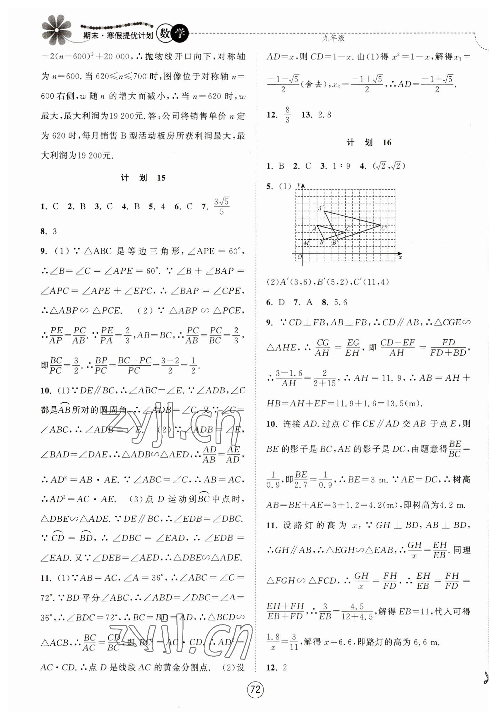 注:目前有些书本章节名称可能整理的还不是很完善,但都是按照顺序排列的,请同学们按照顺序仔细查找。练习册 2023年期末寒假提优计划九年级数学苏科版 答案主要是用来给同学们做完题方便对答案用的,请勿直接抄袭。