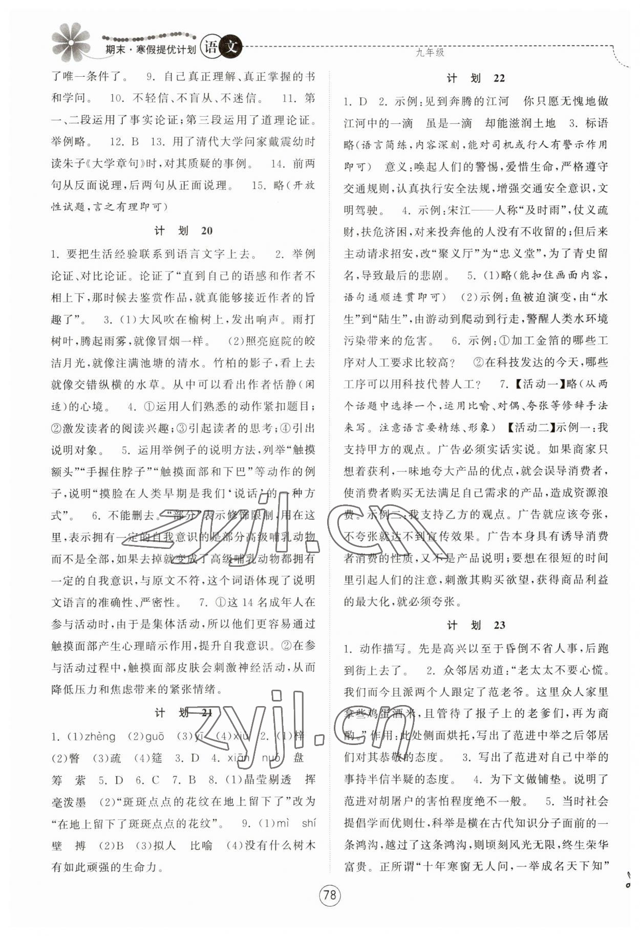 注:目前有些书本章节名称可能整理的还不是很完善,但都是按照顺序排列的,请同学们按照顺序仔细查找。练习册 2023年期末寒假提优计划九年级语文 答案主要是用来给同学们做完题方便对答案用的,请勿直接抄袭。