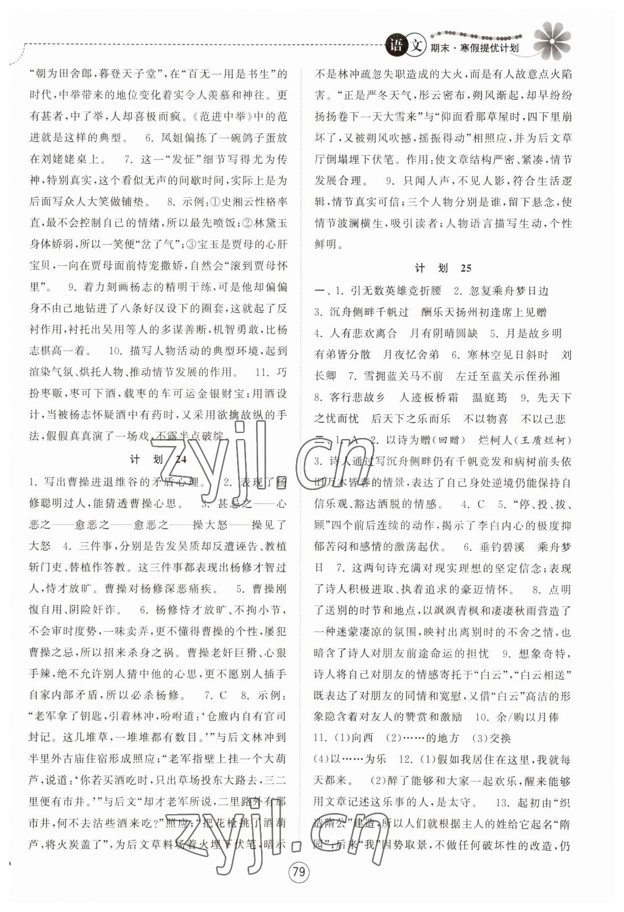 注:目前有些书本章节名称可能整理的还不是很完善,但都是按照顺序排列的,请同学们按照顺序仔细查找。练习册 2023年期末寒假提优计划九年级语文 答案主要是用来给同学们做完题方便对答案用的,请勿直接抄袭。