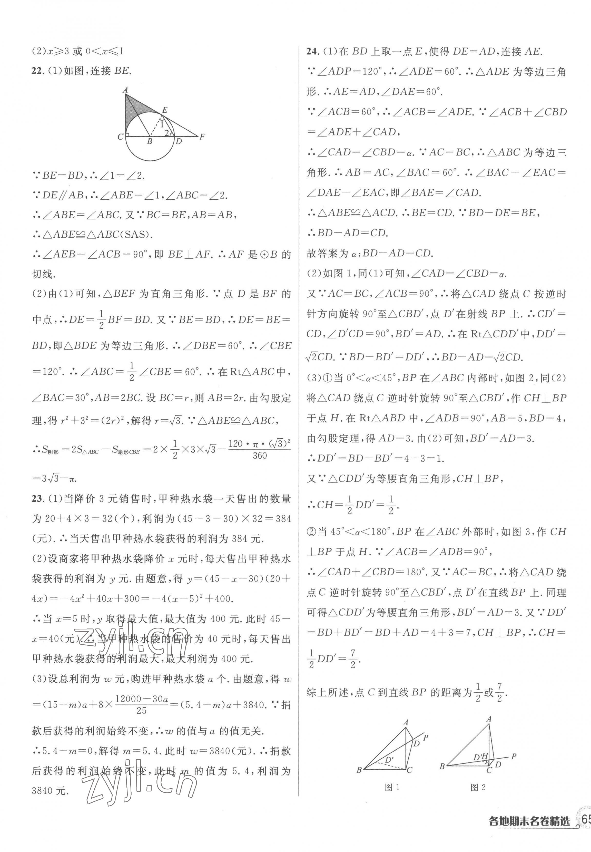 注:目前有些书本章节名称可能整理的还不是很完善,但都是按照顺序排列的,请同学们按照顺序仔细查找。练习册 2022年各地期末名卷精选九年级数学全一册人教版 答案主要是用来给同学们做完题方便对答案用的,请勿直接抄袭。
