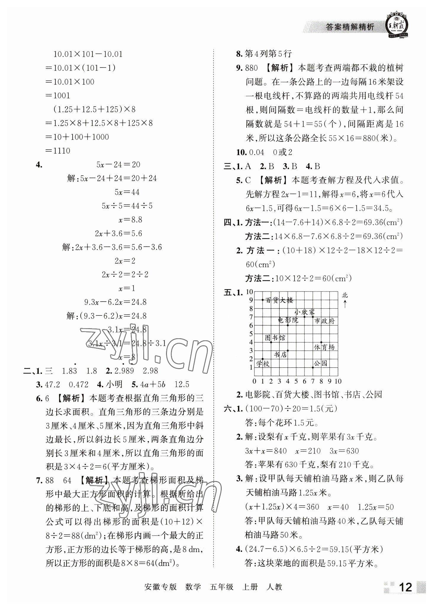 注:目前有些书本章节名称可能整理的还不是很完善,但都是按照顺序排列的,请同学们按照顺序仔细查找。练习册 2022年王朝霞期末试卷研究五年级数学上册人教版安徽专版 答案主要是用来给同学们做完题方便对答案用的,请勿直接抄袭。