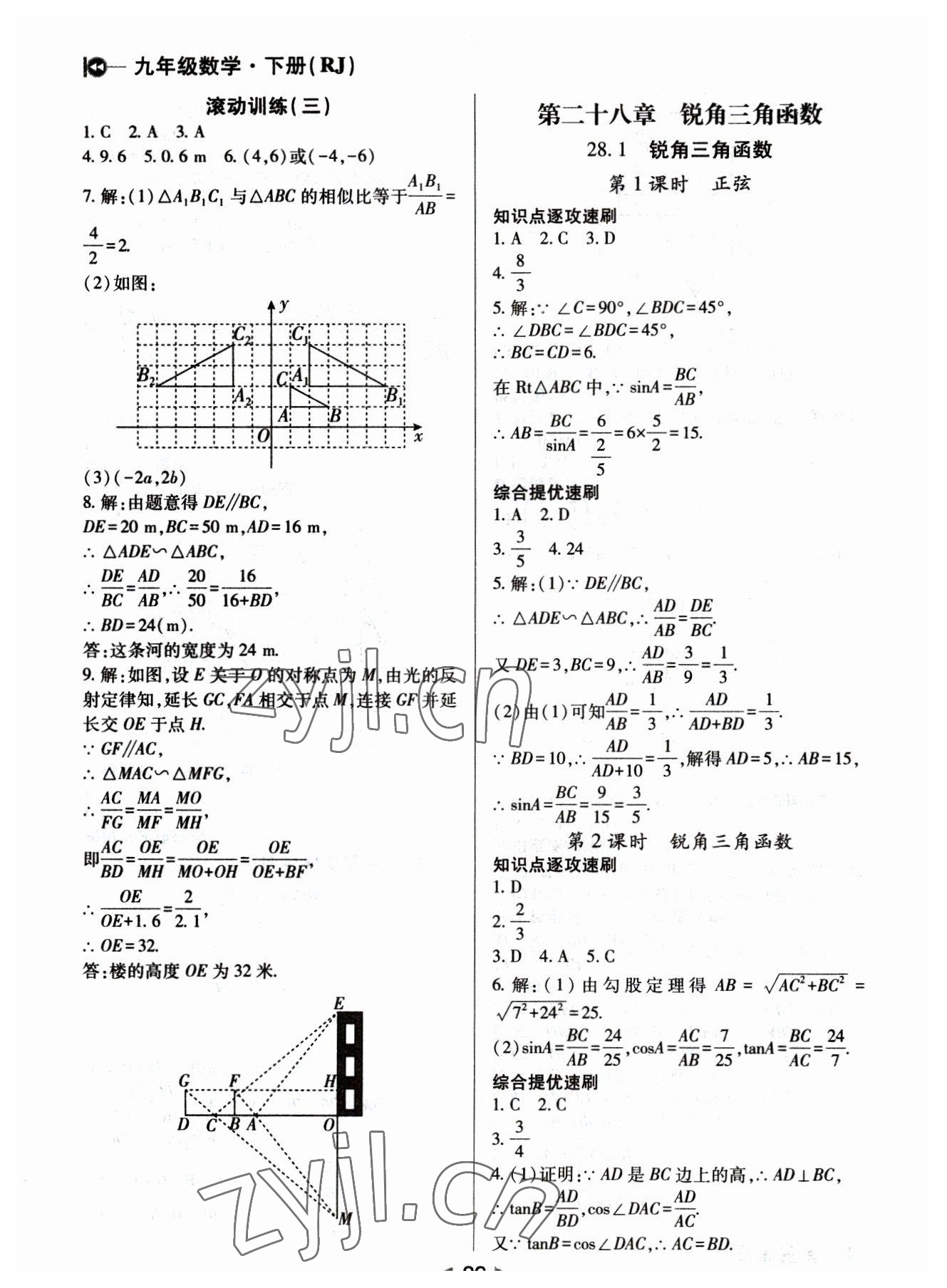 注:目前有些书本章节名称可能整理的还不是很完善,但都是按照顺序排列的,请同学们按照顺序仔细查找。练习册 2023年课堂10分钟小题速刷九年级数学下册人教版 答案主要是用来给同学们做完题方便对答案用的,请勿直接抄袭。