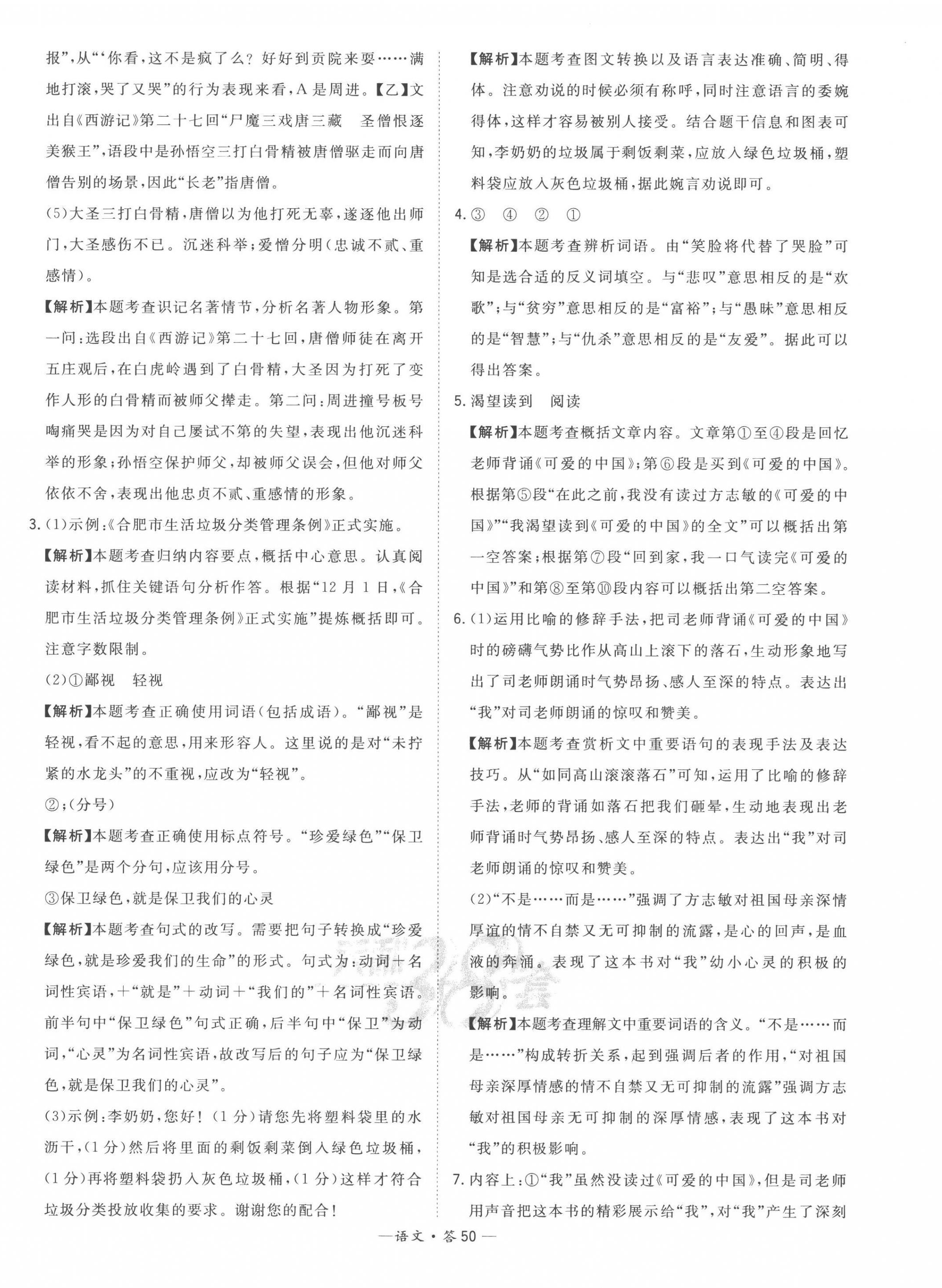 2023年天利38套中考试题精选语文安徽专版