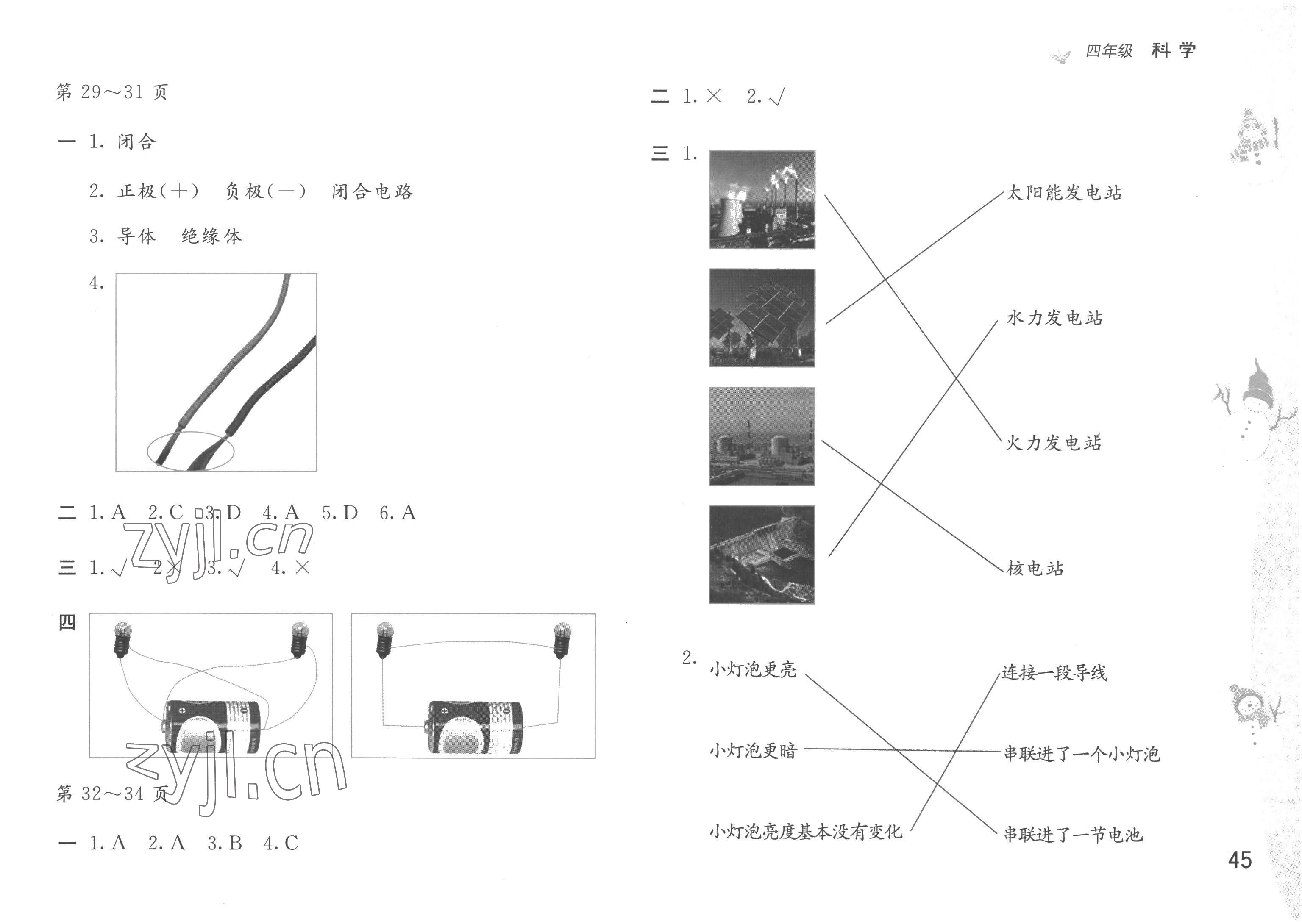 2023年寒假作业四年级科学苏教版安徽少年儿童出版社