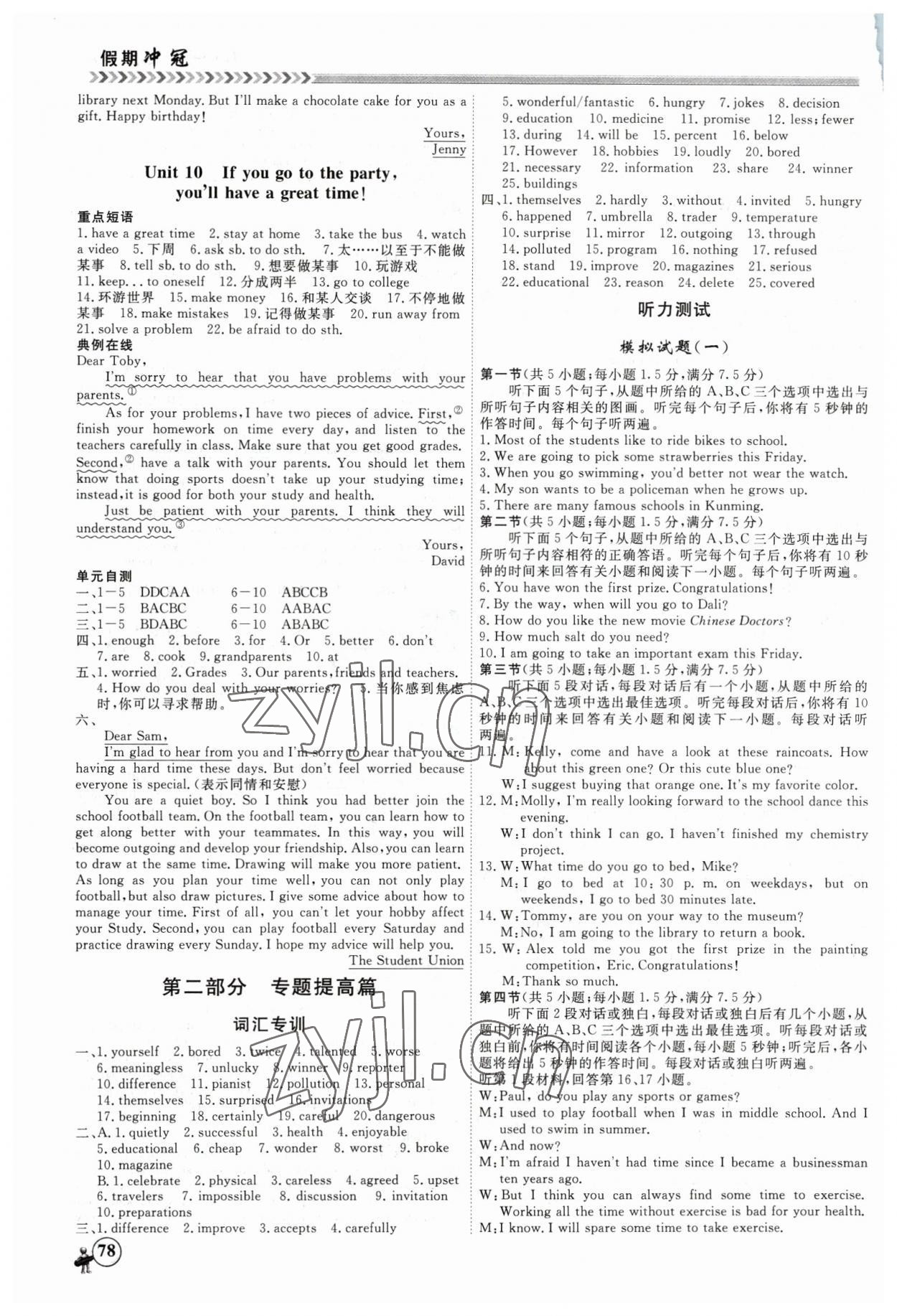 注:目前有些书本章节名称可能整理的还不是很完善,但都是按照顺序排列的,请同学们按照顺序仔细查找。练习册 2023年假期冲冠黑龙江教育出版社八年级英语 答案主要是用来给同学们做完题方便对答案用的,请勿直接抄袭。