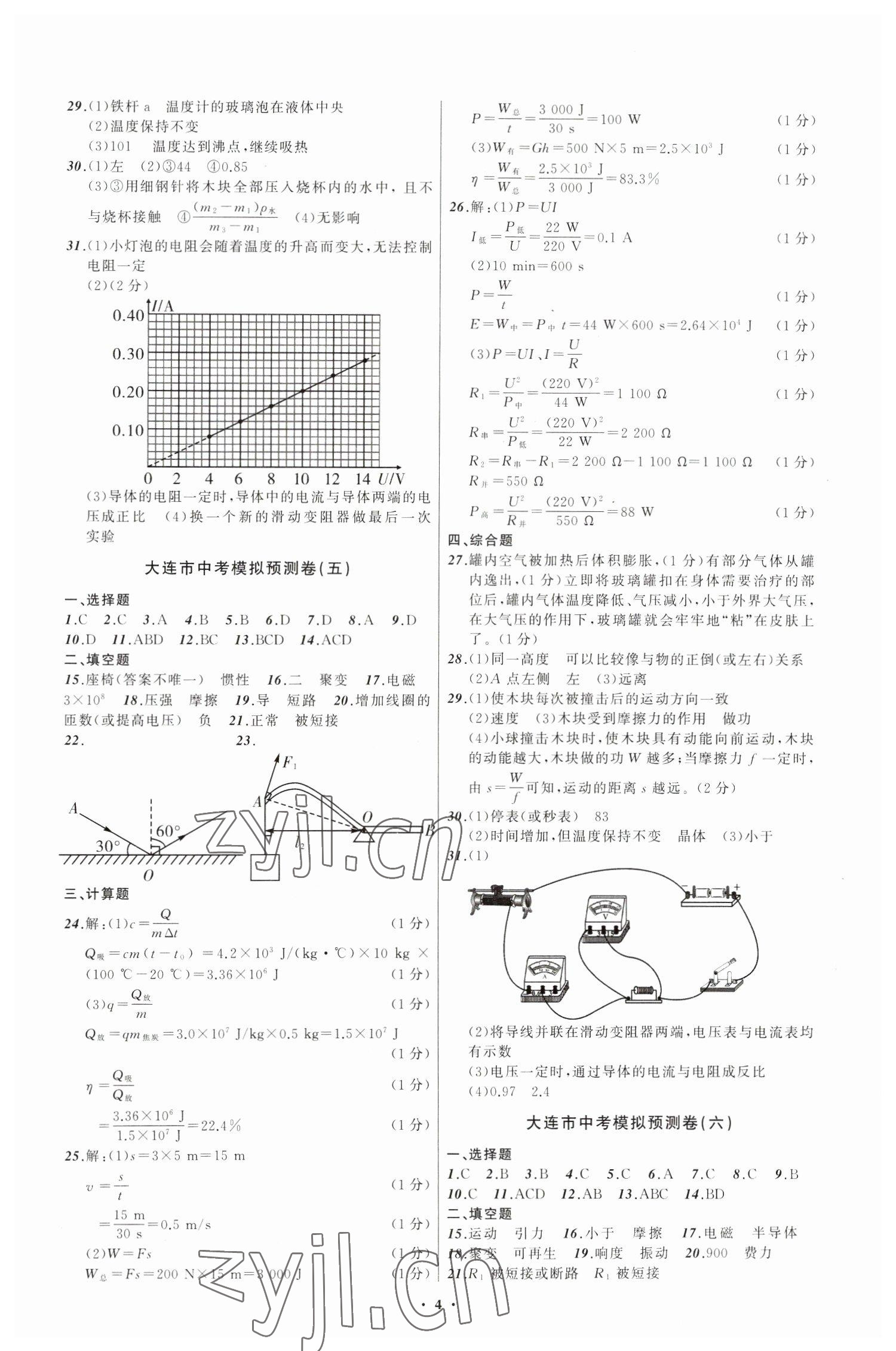 注:目前有些书本章节名称可能整理的还不是很完善,但都是按照顺序排列的,请同学们按照顺序仔细查找。练习册 2023年中考模拟预测卷物理大连专版 答案主要是用来给同学们做完题方便对答案用的,请勿直接抄袭。