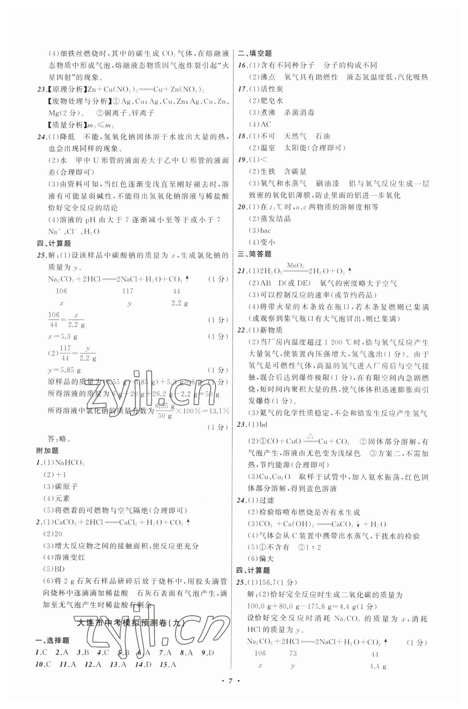 注:目前有些书本章节名称可能整理的还不是很完善,但都是按照顺序排列的,请同学们按照顺序仔细查找。练习册 2023年中考模拟预测卷化学大连专版 答案主要是用来给同学们做完题方便对答案用的,请勿直接抄袭。