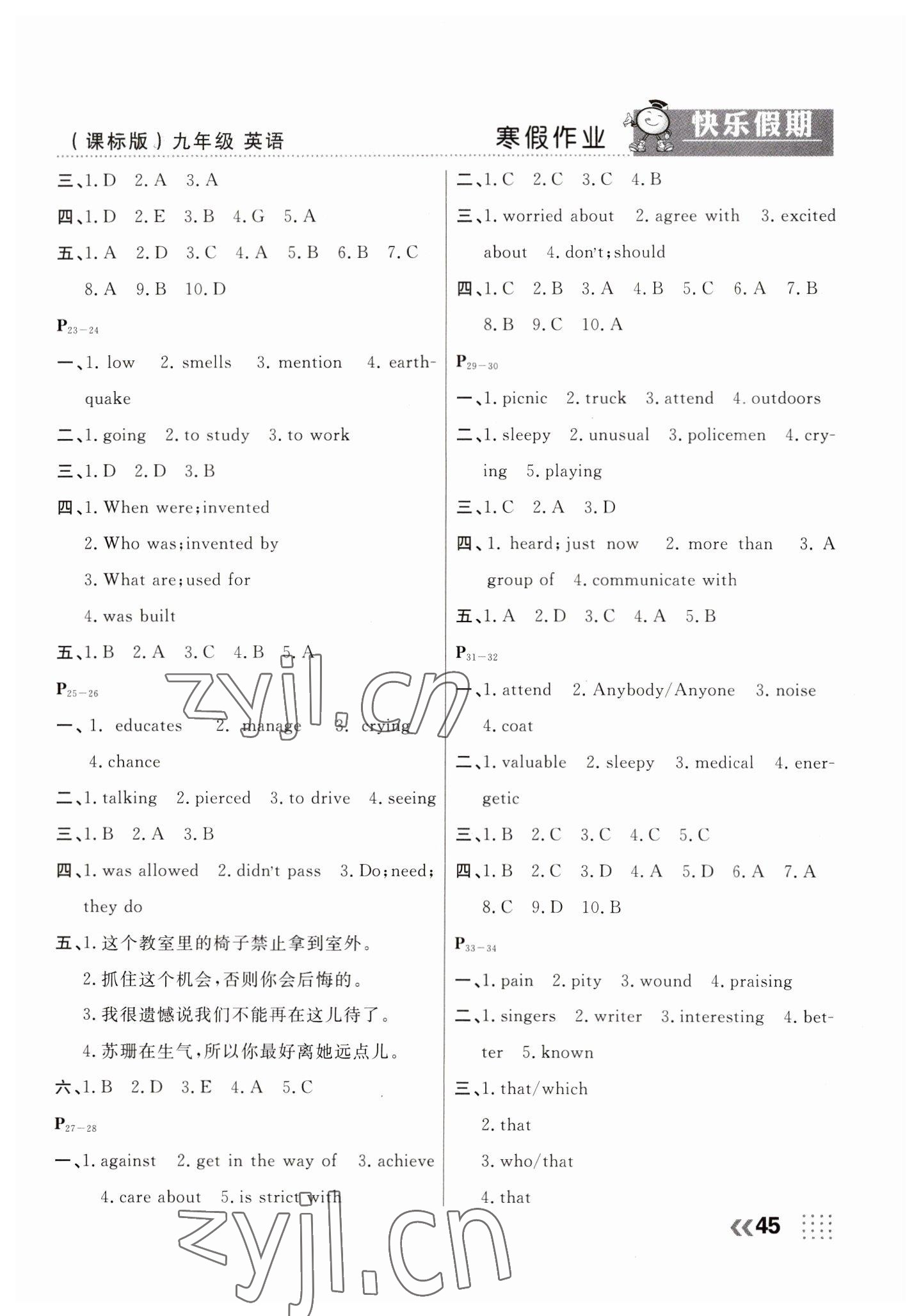 注:目前有些书本章节名称可能整理的还不是很完善,但都是按照顺序排列的,请同学们按照顺序仔细查找。练习册 2023年本土假期总复习寒假九年级英语课标版 答案主要是用来给同学们做完题方便对答案用的,请勿直接抄袭。