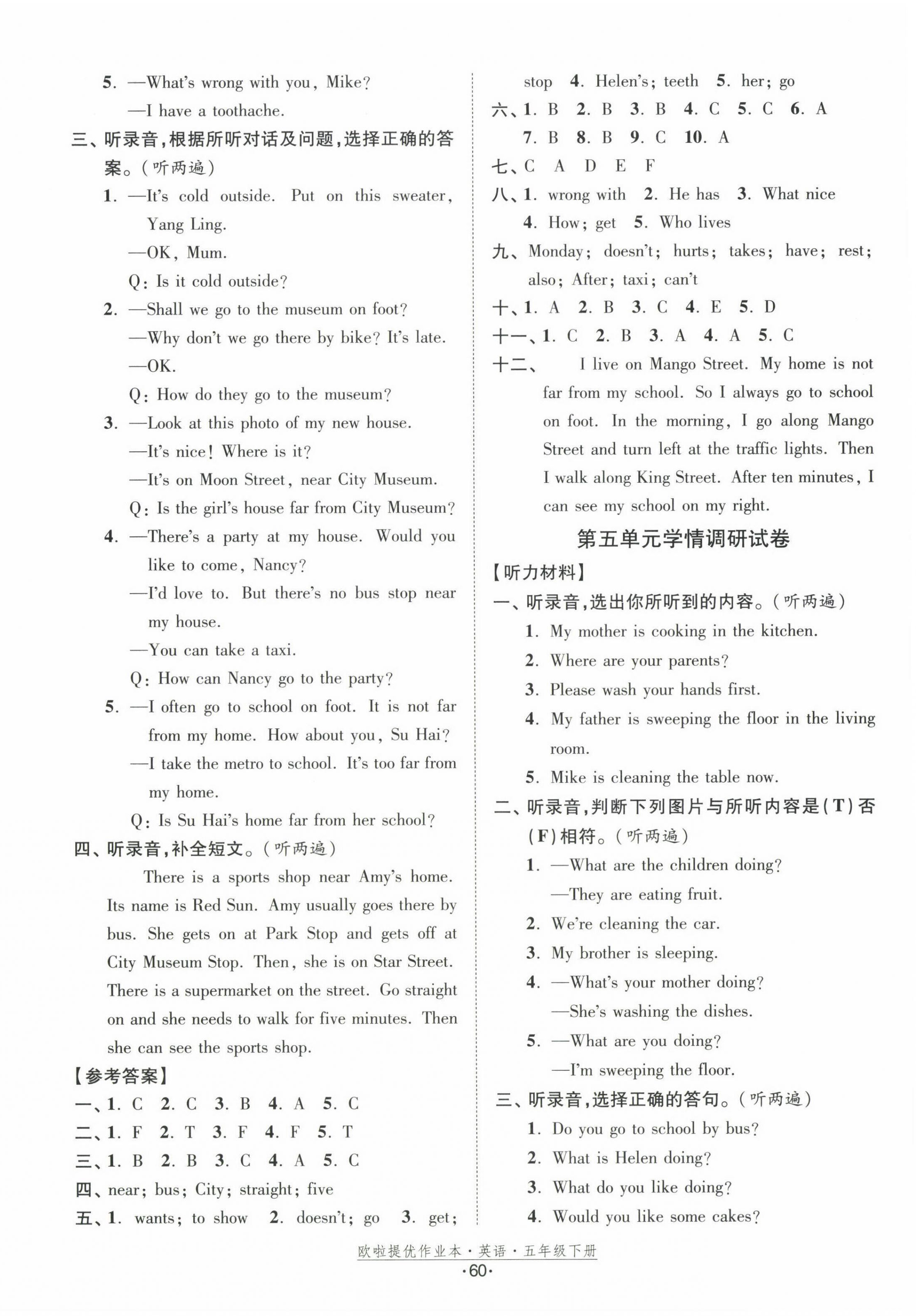 注:目前有些书本章节名称可能整理的还不是很完善,但都是按照顺序排列的,请同学们按照顺序仔细查找。练习册 2023年欧拉提优作业本五年级英语下册译林版 答案主要是用来给同学们做完题方便对答案用的,请勿直接抄袭。