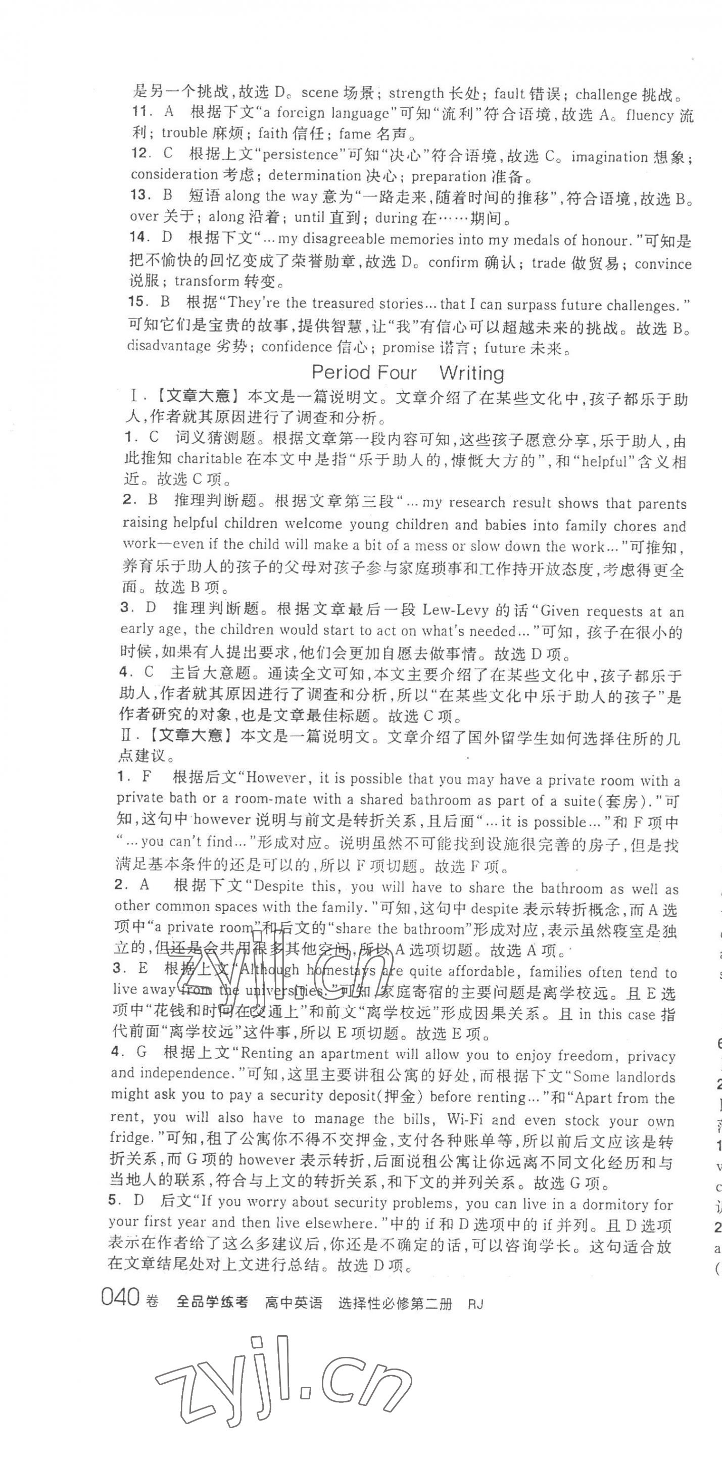 注:目前有些书本章节名称可能整理的还不是很完善,但都是按照顺序排列的,请同学们按照顺序仔细查找。练习册 2023年全品学练考高中英语选择性必修第二册人教版 答案主要是用来给同学们做完题方便对答案用的,请勿直接抄袭。