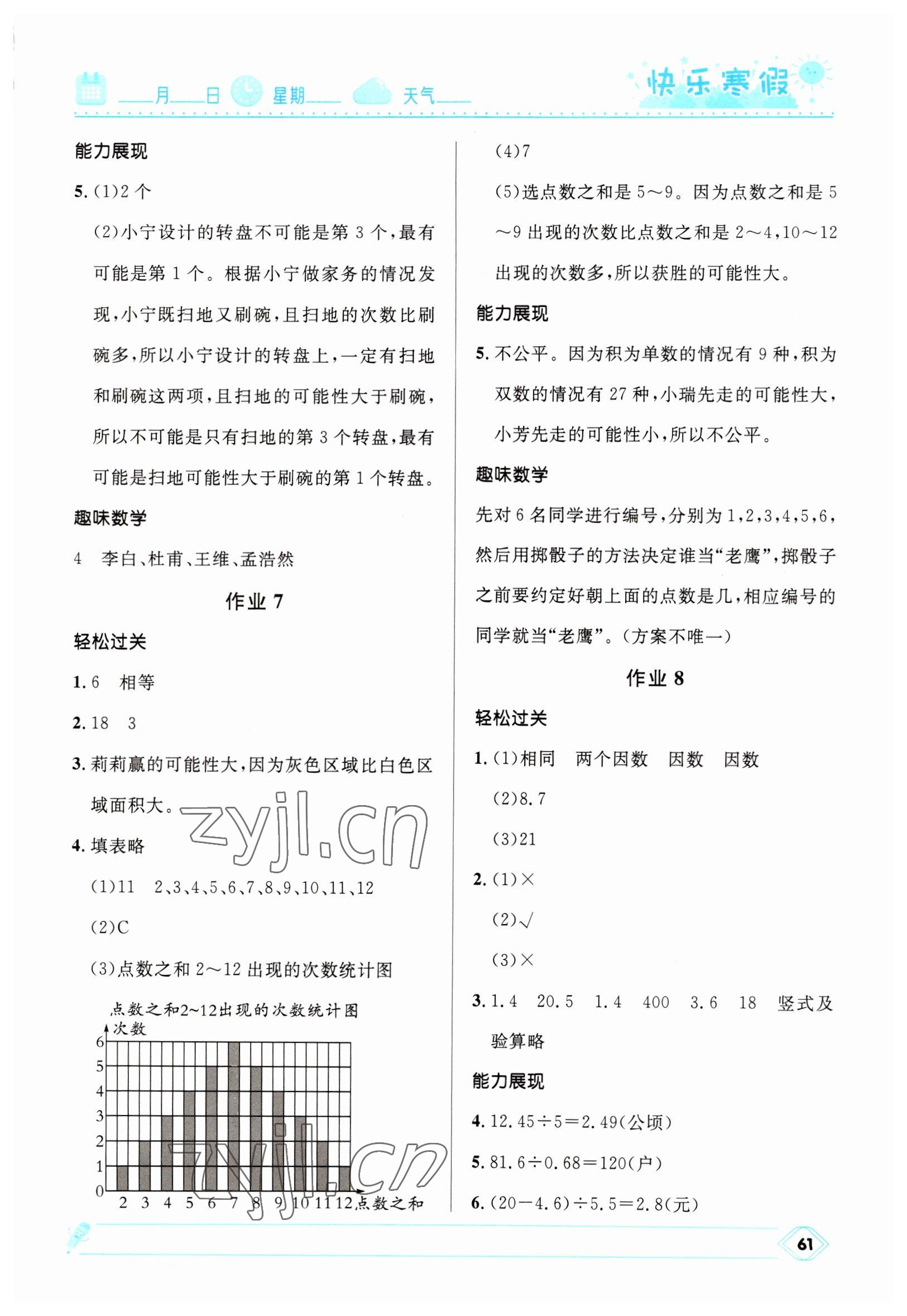 《2023年赢在起跑线快乐寒假河北少年儿童出版社五年级数学人教版》
