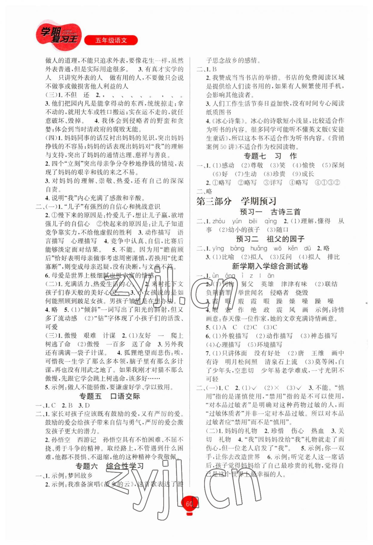 注:目前有些书本章节名称可能整理的还不是很完善,但都是按照顺序排列的,请同学们按照顺序仔细查找。练习册 2023年复习王学期总动员五年级语文人教版 答案主要是用来给同学们做完题方便对答案用的,请勿直接抄袭。
