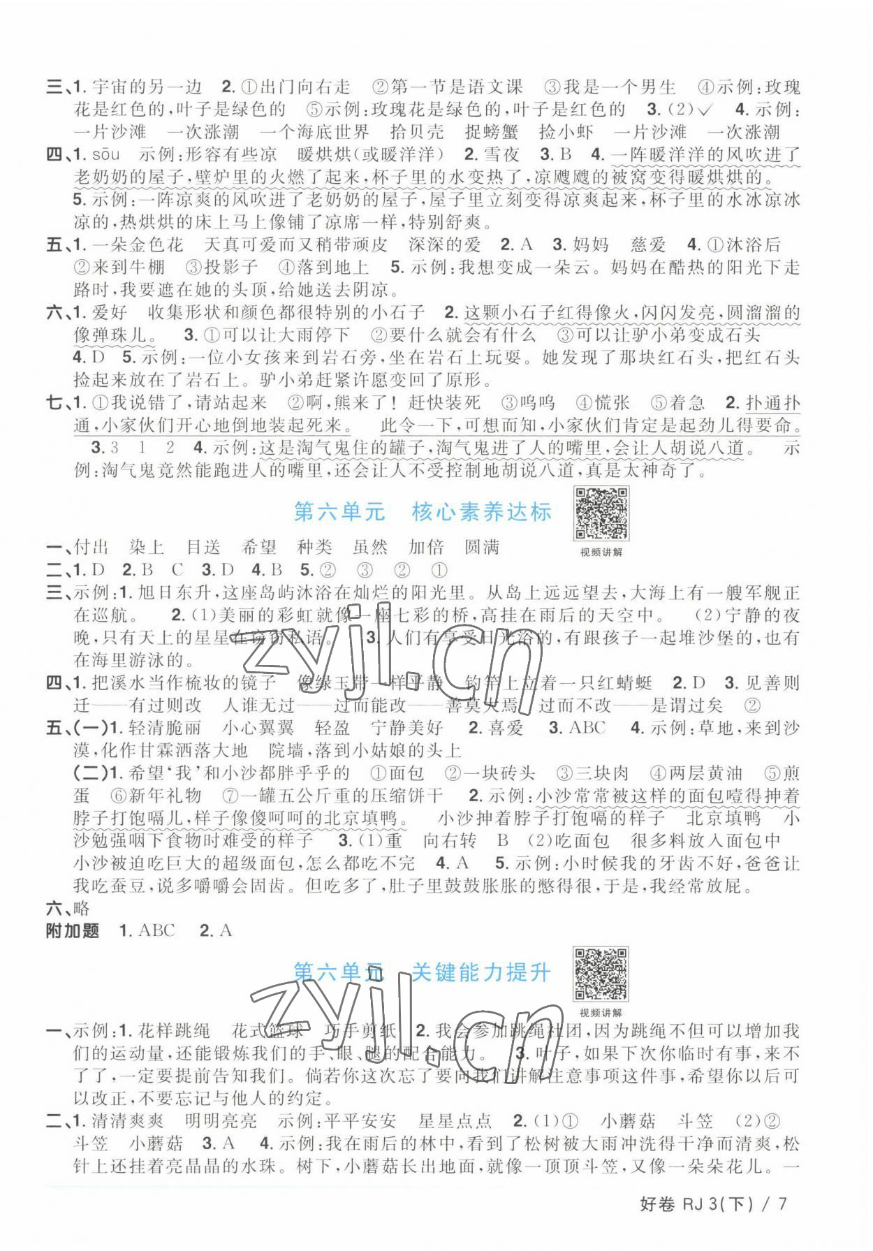 注:目前有些书本章节名称可能整理的还不是很完善,但都是按照顺序排列的,请同学们按照顺序仔细查找。练习册 2023年阳光同学一线名师全优好卷三年级语文下册人教版浙江专版 答案主要是用来给同学们做完题方便对答案用的,请勿直接抄袭。