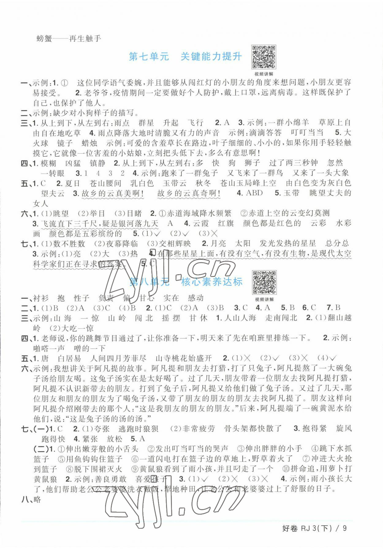 注:目前有些书本章节名称可能整理的还不是很完善,但都是按照顺序排列的,请同学们按照顺序仔细查找。练习册 2023年阳光同学一线名师全优好卷三年级语文下册人教版浙江专版 答案主要是用来给同学们做完题方便对答案用的,请勿直接抄袭。