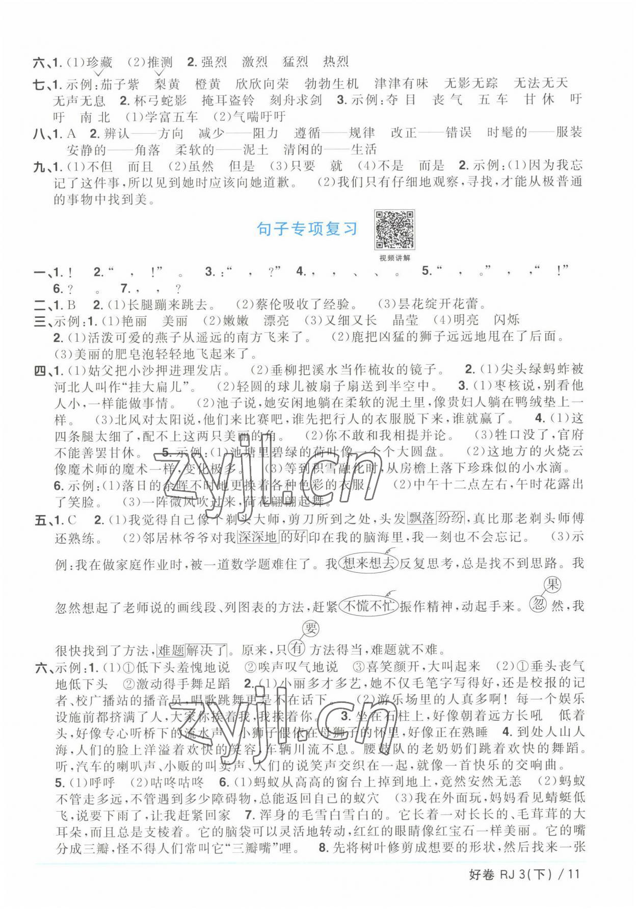 注:目前有些书本章节名称可能整理的还不是很完善,但都是按照顺序排列的,请同学们按照顺序仔细查找。练习册 2023年阳光同学一线名师全优好卷三年级语文下册人教版浙江专版 答案主要是用来给同学们做完题方便对答案用的,请勿直接抄袭。