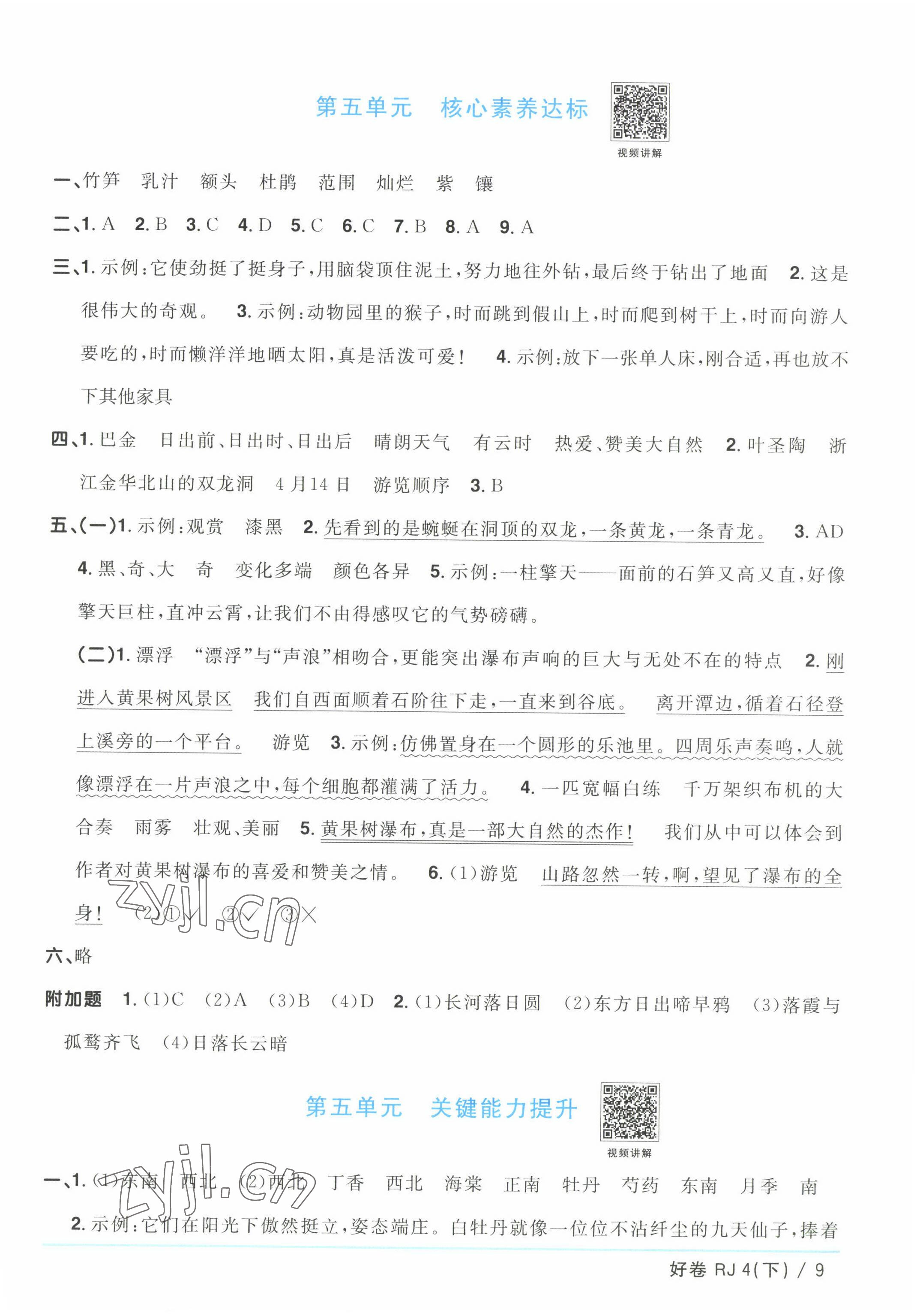 注:目前有些书本章节名称可能整理的还不是很完善,但都是按照顺序排列的,请同学们按照顺序仔细查找。练习册 2023年阳光同学一线名师全优好卷四年级语文下册人教版浙江专版 答案主要是用来给同学们做完题方便对答案用的,请勿直接抄袭。