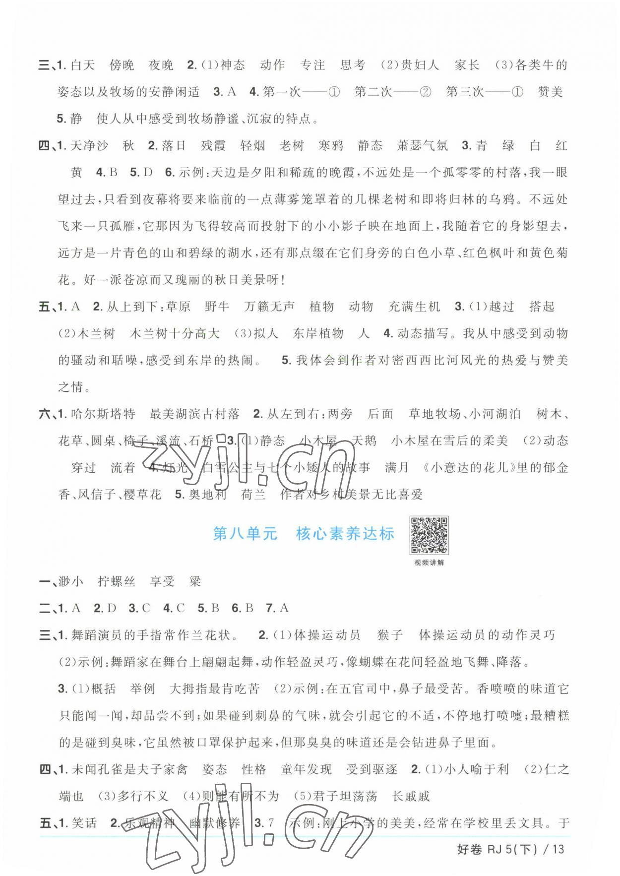 注:目前有些书本章节名称可能整理的还不是很完善,但都是按照顺序排列的,请同学们按照顺序仔细查找。练习册 2023年阳光同学一线名师全优好卷五年级语文下册人教版浙江专版 答案主要是用来给同学们做完题方便对答案用的,请勿直接抄袭。