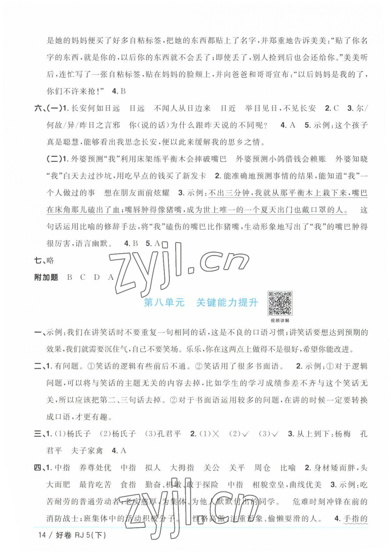 注:目前有些书本章节名称可能整理的还不是很完善,但都是按照顺序排列的,请同学们按照顺序仔细查找。练习册 2023年阳光同学一线名师全优好卷五年级语文下册人教版浙江专版 答案主要是用来给同学们做完题方便对答案用的,请勿直接抄袭。