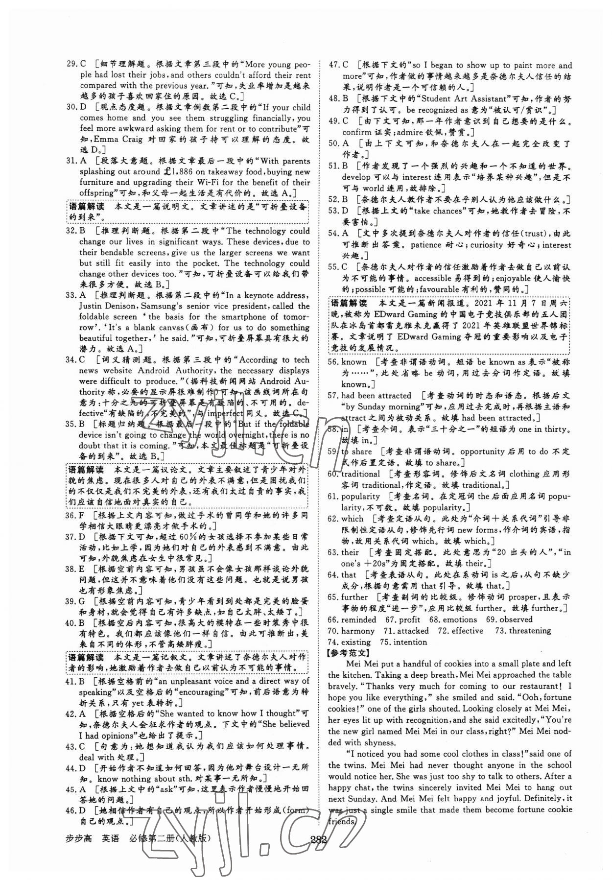 注:目前有些书本章节名称可能整理的还不是很完善,但都是按照顺序排列的,请同学们按照顺序仔细查找。练习册 2023年步步高学习笔记高中英语必修第二册人教版 答案主要是用来给同学们做完题方便对答案用的,请勿直接抄袭。
