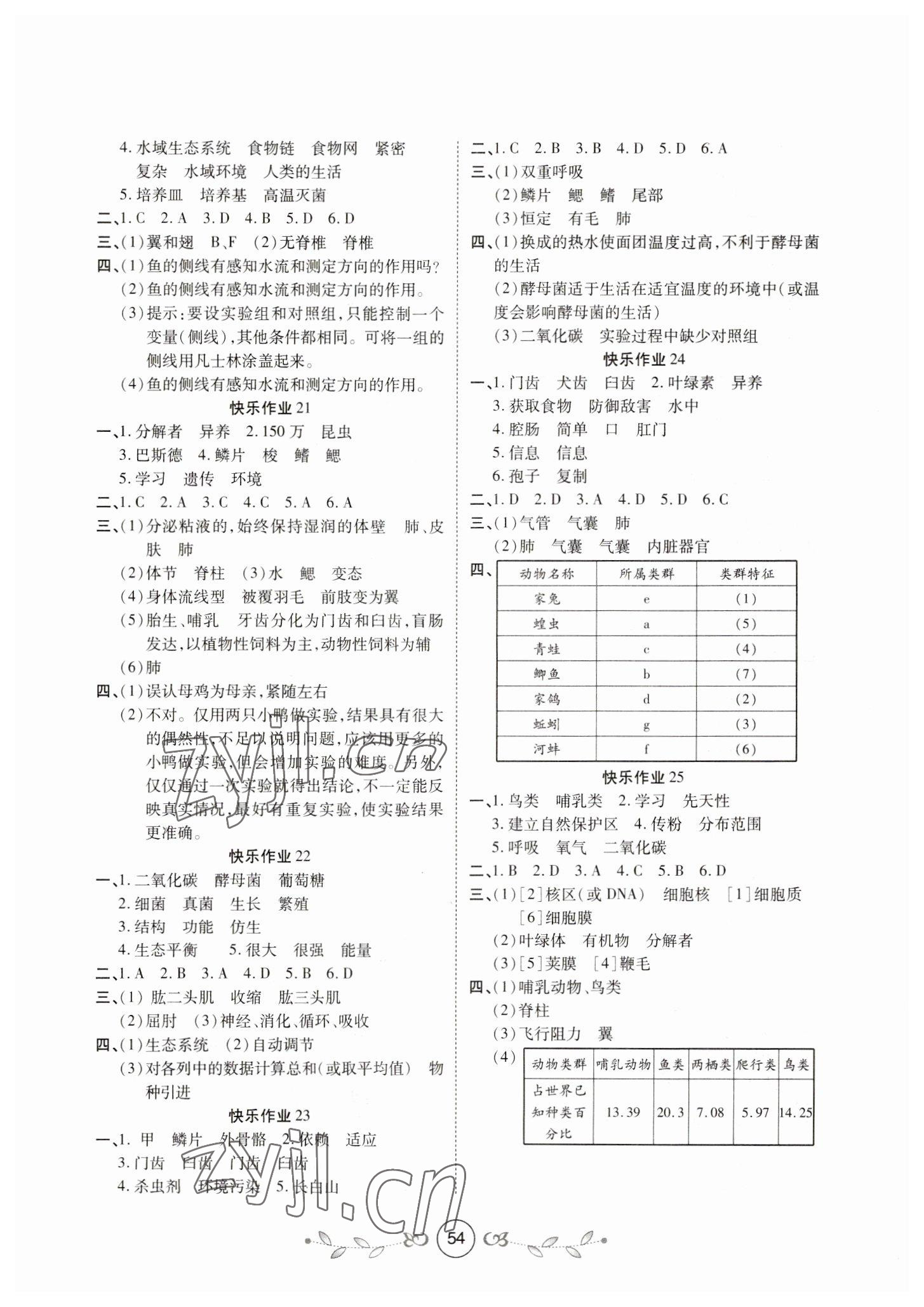 注:目前有些书本章节名称可能整理的还不是很完善,但都是按照顺序排列的,请同学们按照顺序仔细查找。练习册 2023年书香天博寒假作业八年级生物西安出版社 答案主要是用来给同学们做完题方便对答案用的,请勿直接抄袭。