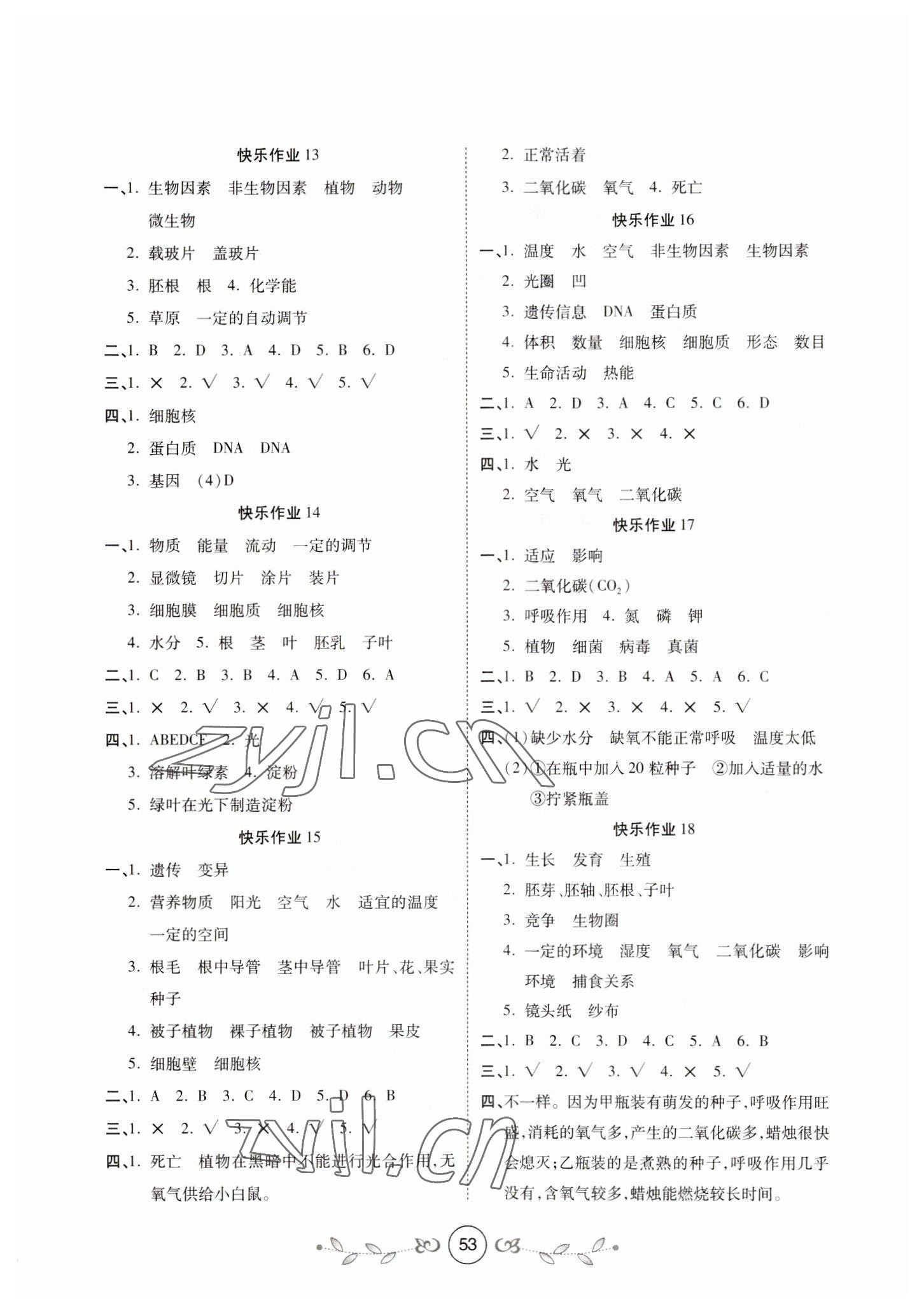 2023年书香天博寒假作业西安出版社七年级生物人教版