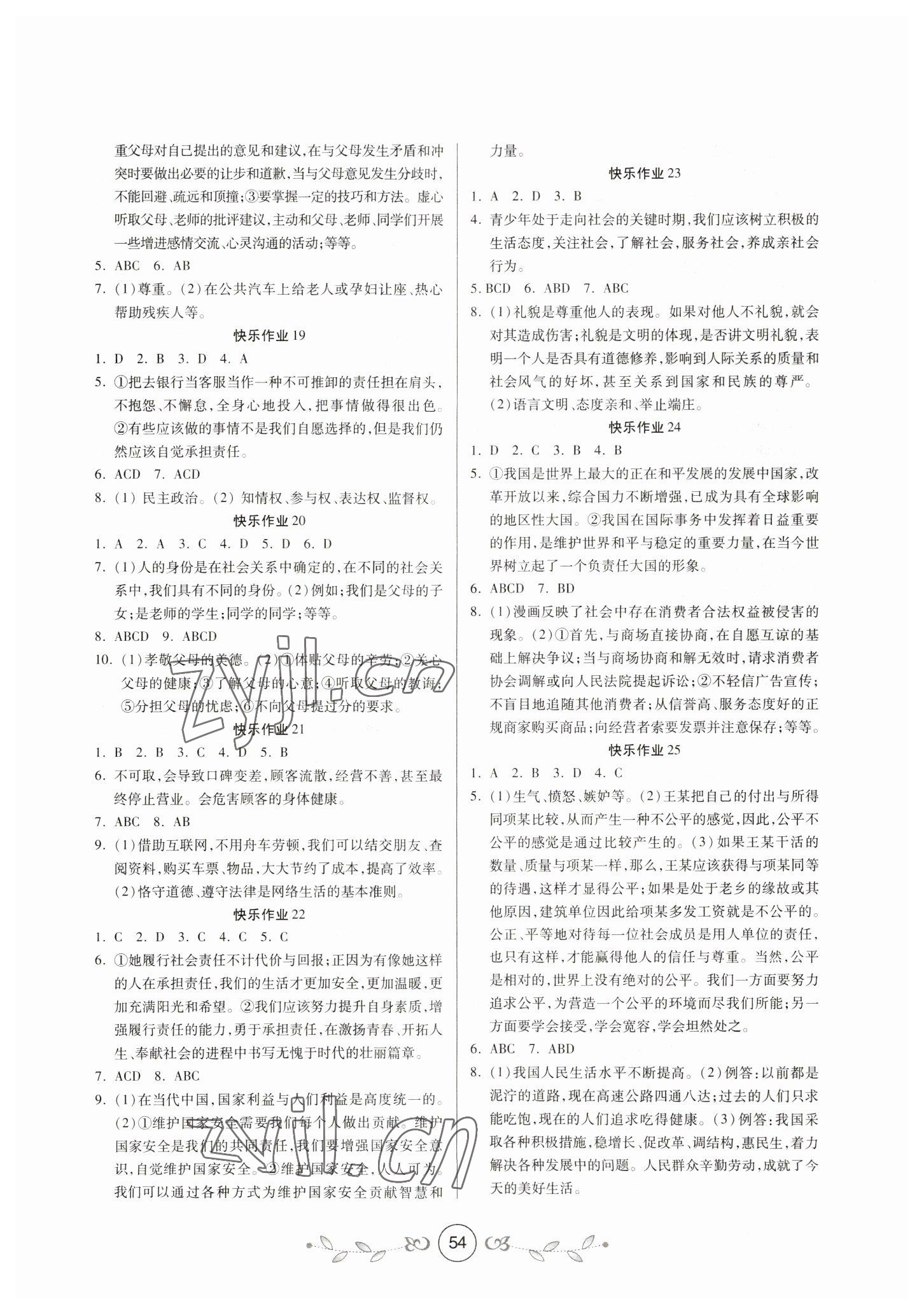 2023年书香天博寒假作业八年级道德与法治西安出版社
