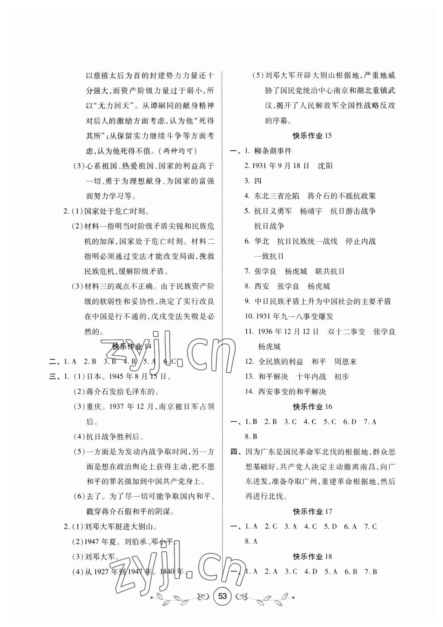 2023年书香天博寒假作业西安出版社八年级历史人教版