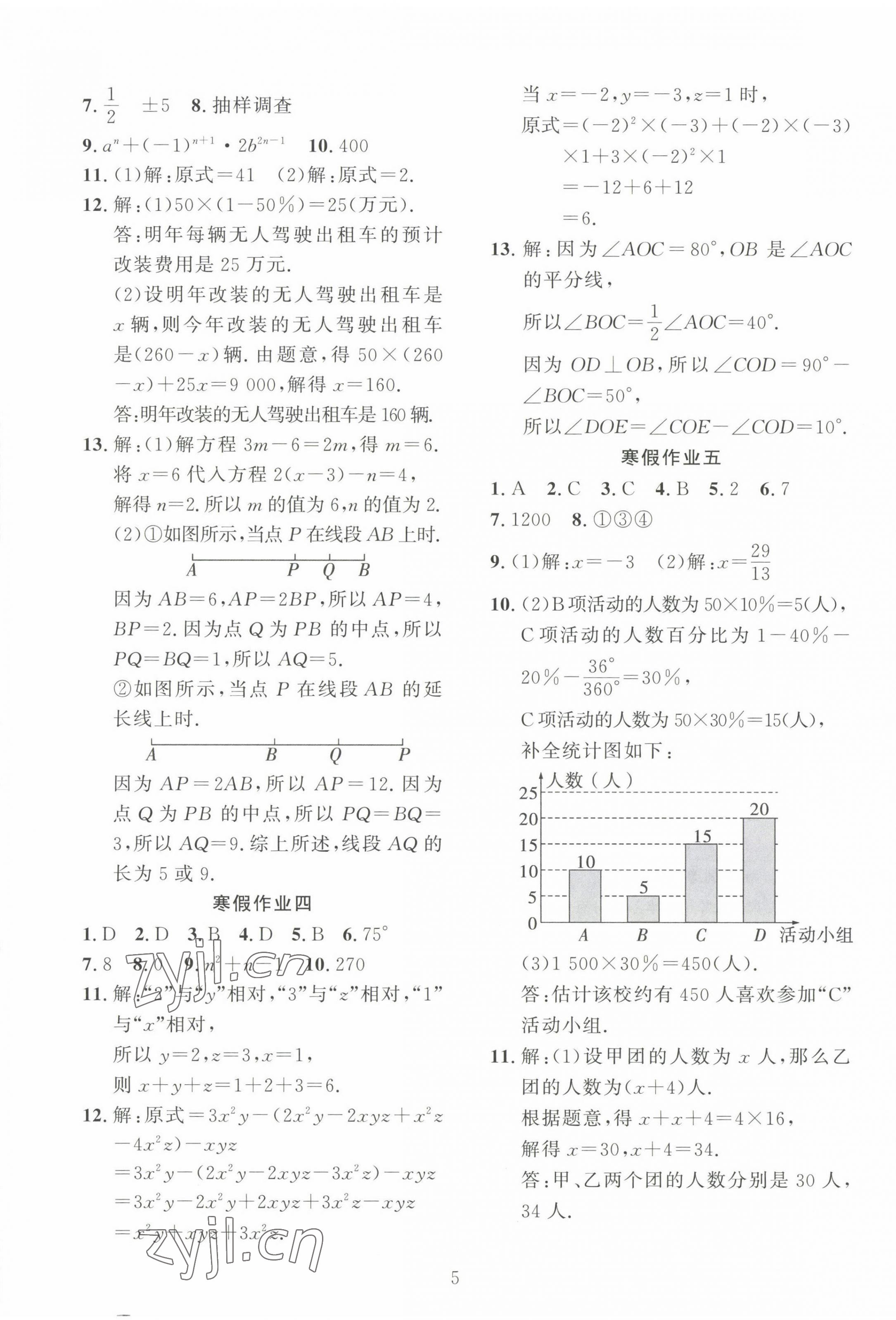 2023年鑫浪传媒给力100寒假作业七年级数学人教版