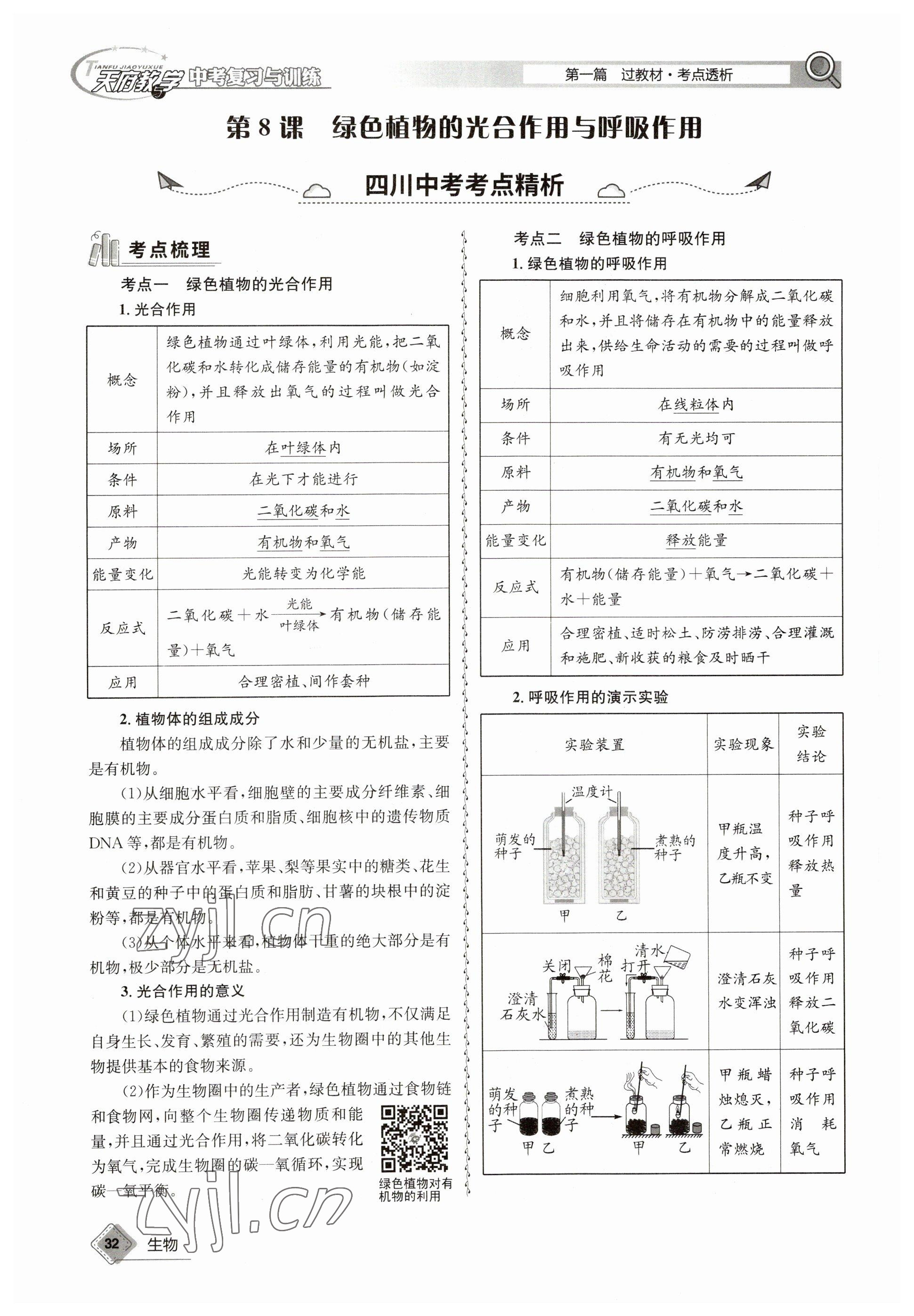 2023年天府教与学中考复习与训练生物达州专版