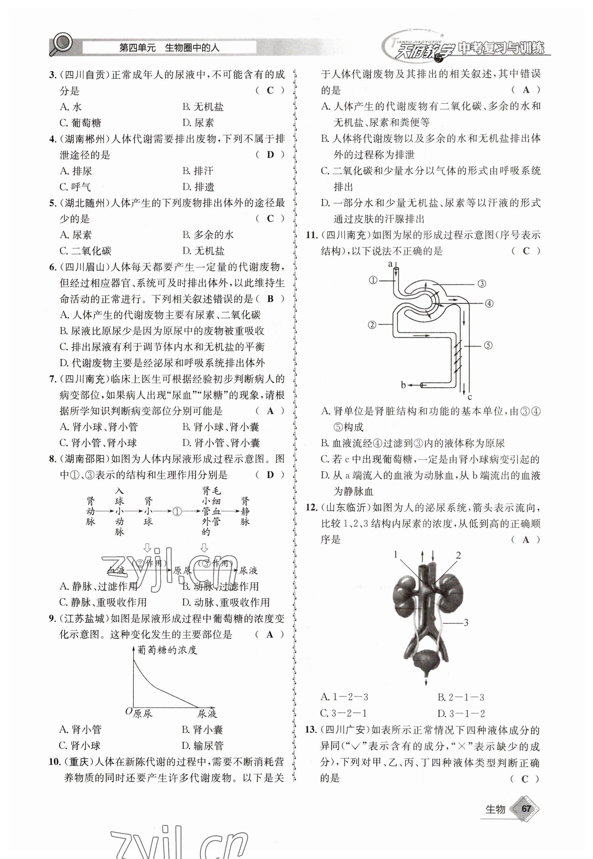 2023年天府教与学中考复习与训练生物达州专版