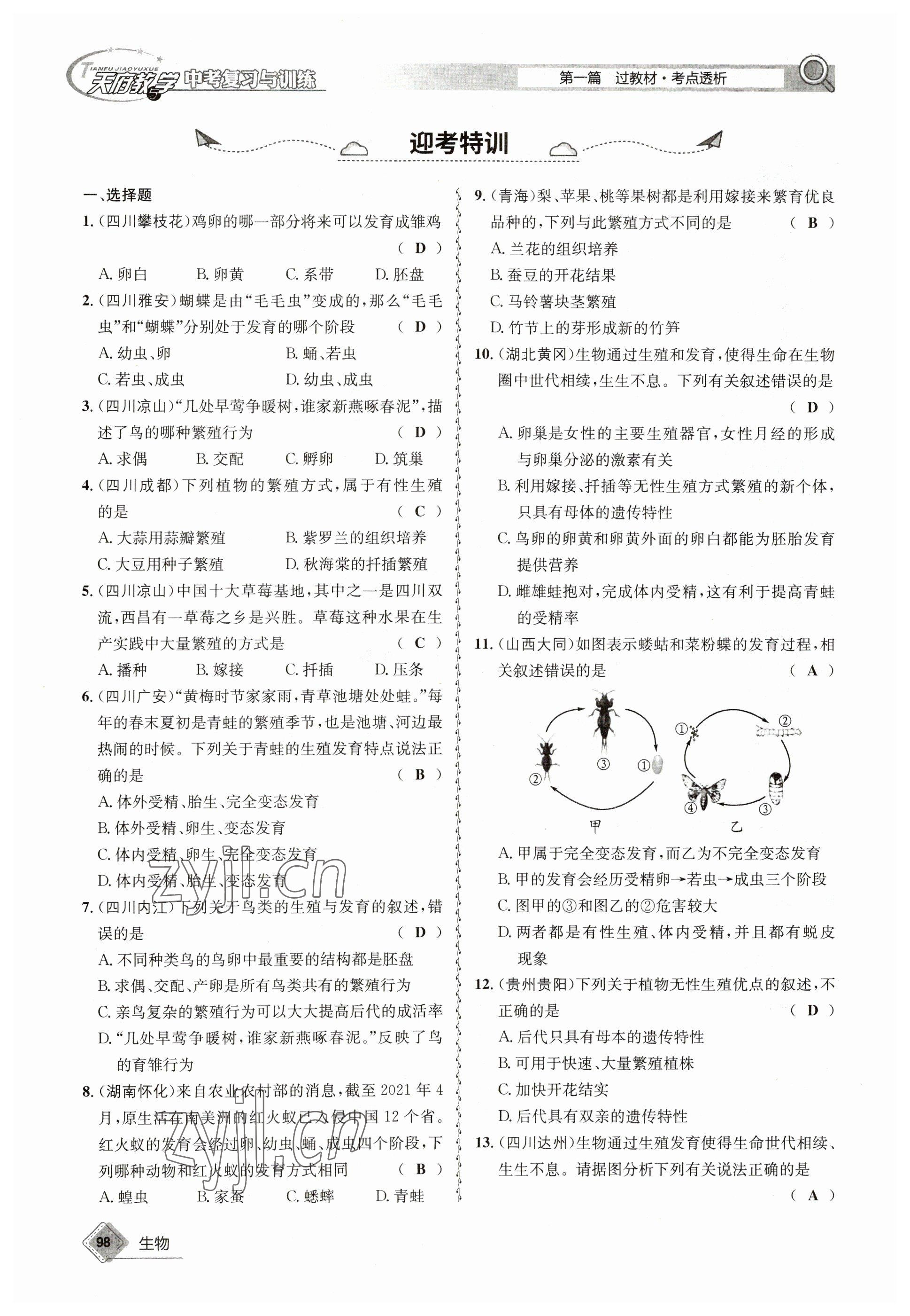 注:目前有些书本章节名称可能整理的还不是很完善,但都是按照顺序排列的,请同学们按照顺序仔细查找。练习册 2023年天府教与学中考复习与训练生物达州专版 答案主要是用来给同学们做完题方便对答案用的,请勿直接抄袭。
