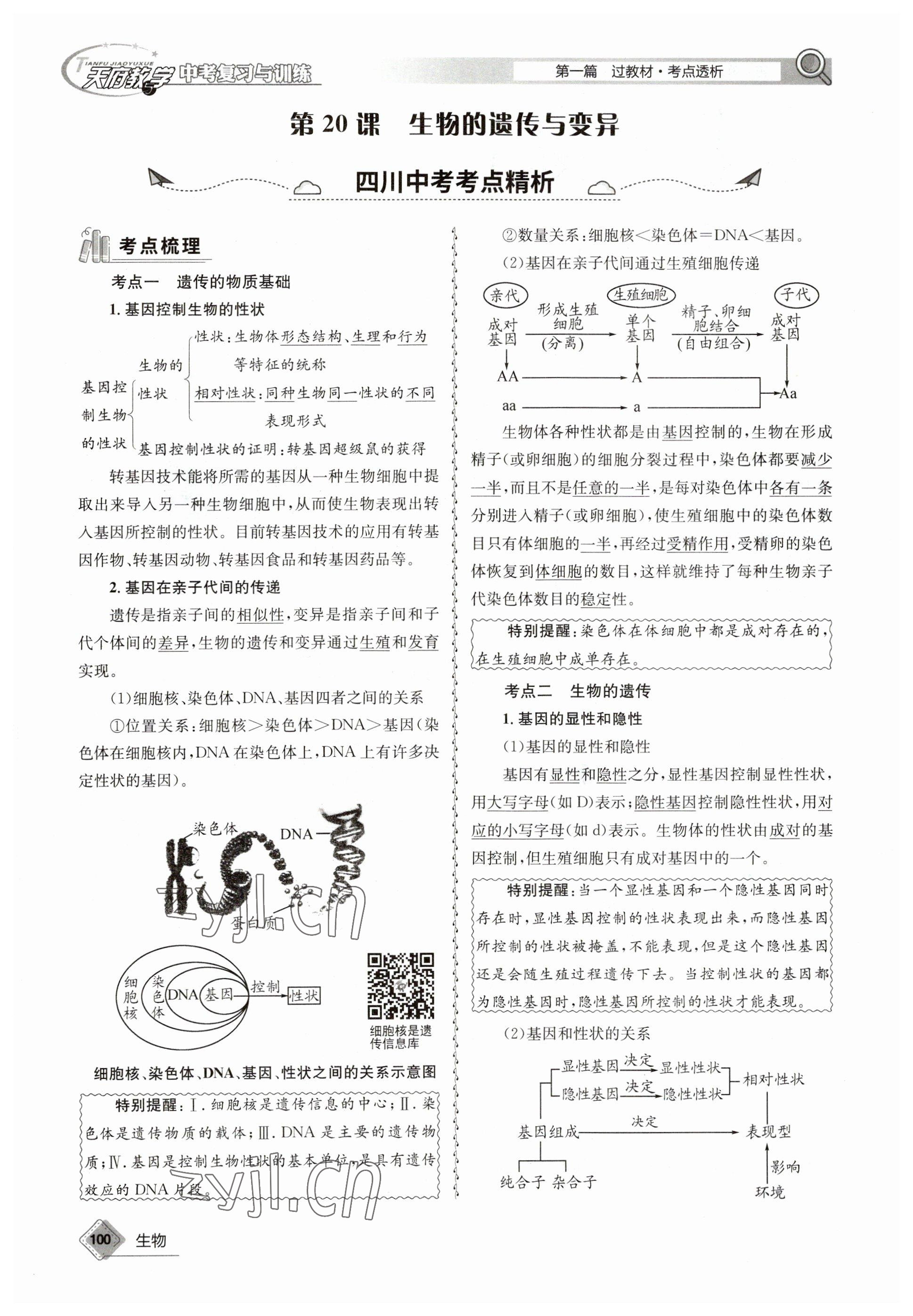 2023年天府教与学中考复习与训练生物达州专版