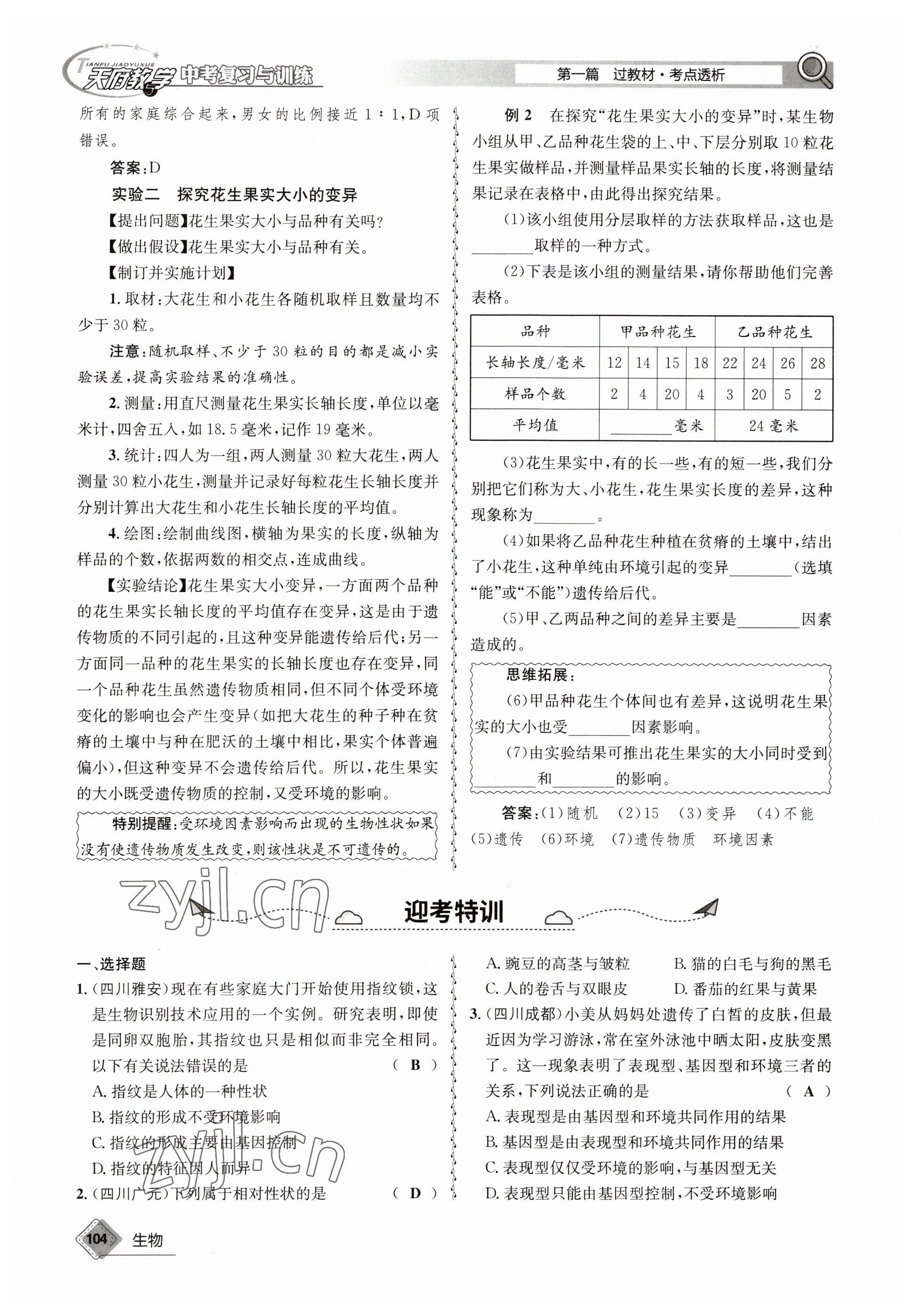 2023年天府教与学中考复习与训练生物达州专版