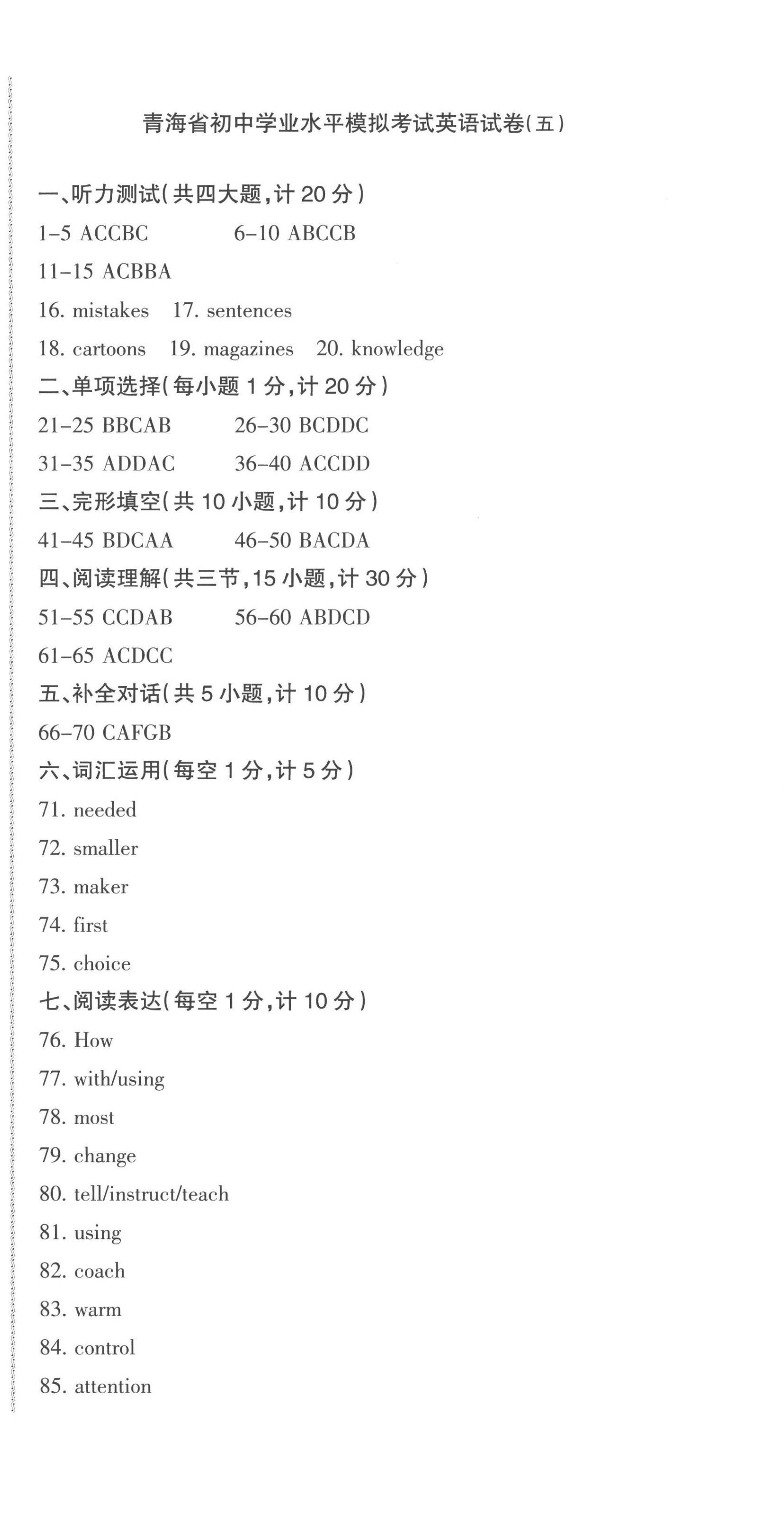 注:目前有些书本章节名称可能整理的还不是很完善,但都是按照顺序排列的,请同学们按照顺序仔细查找。练习册 2023年青海省中考密卷考前预测英语 答案主要是用来给同学们做完题方便对答案用的,请勿直接抄袭。