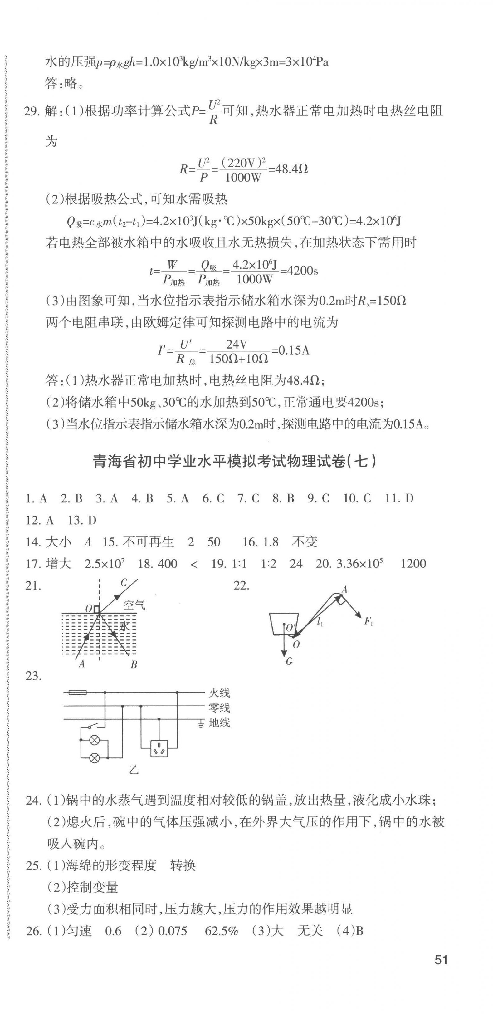 注:目前有些书本章节名称可能整理的还不是很完善,但都是按照顺序排列的,请同学们按照顺序仔细查找。练习册 2023年青海省中考密卷考前预测物理 答案主要是用来给同学们做完题方便对答案用的,请勿直接抄袭。