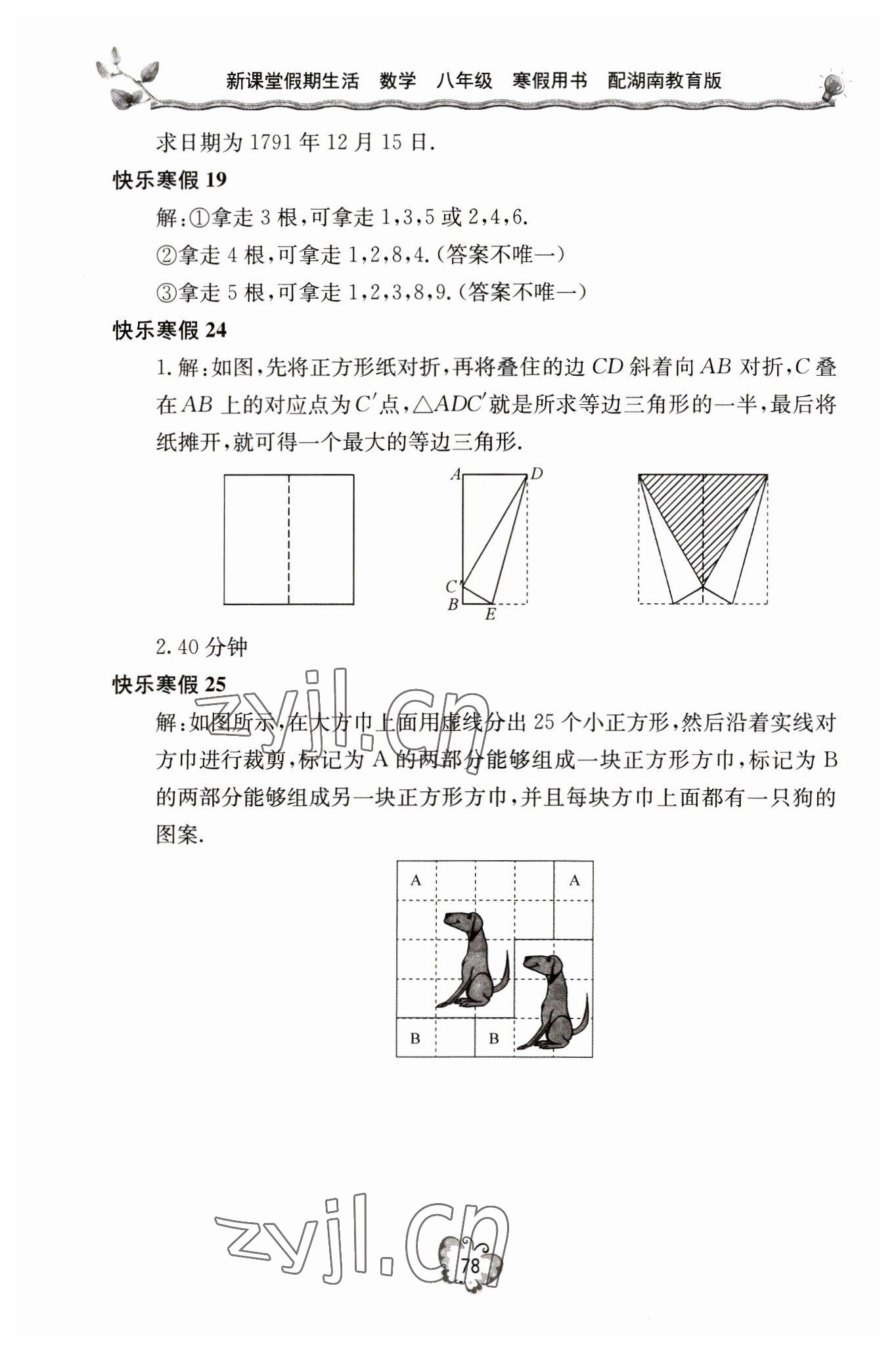 2023年新课堂假期生活寒假用书北京教育出版社八年级数学湘教版