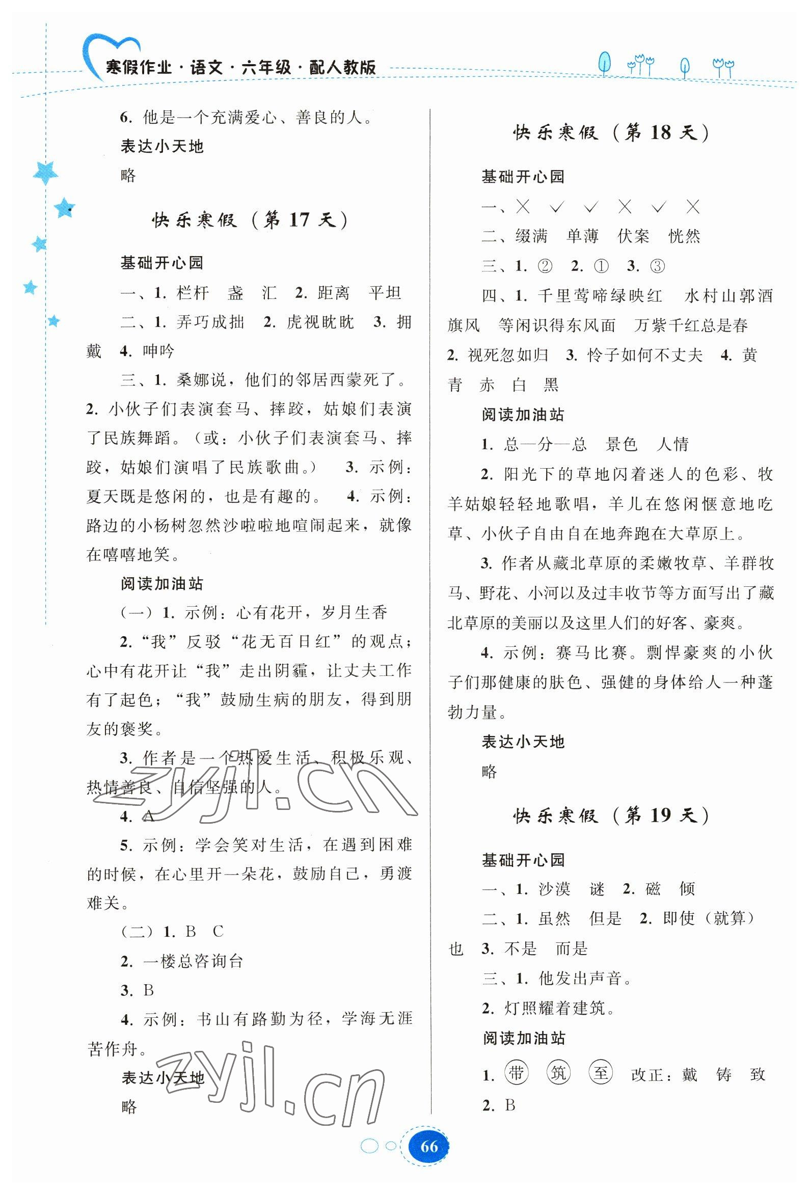 2023年寒假作业六年级语文人教版贵州人民出版社