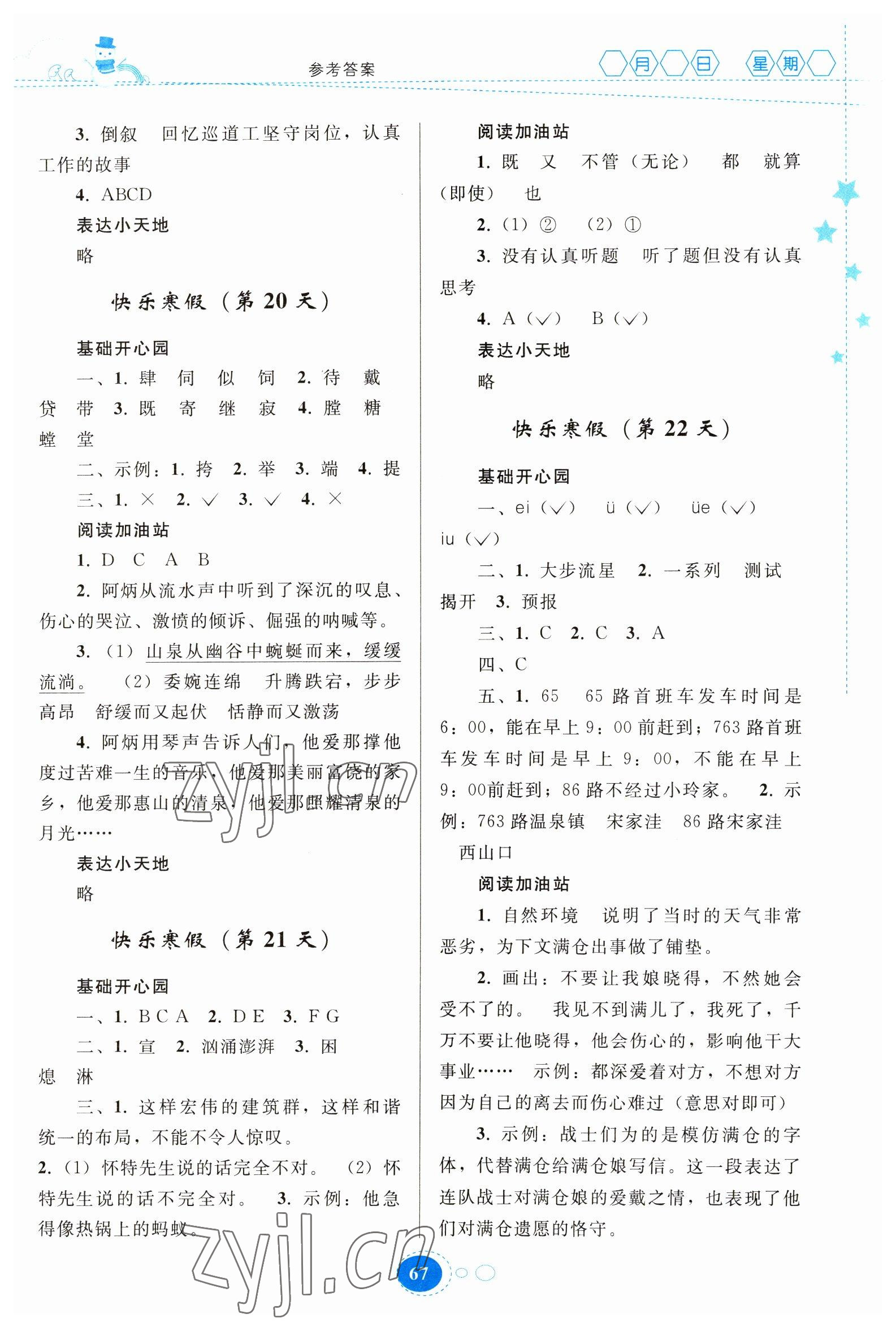2023年寒假作业六年级语文人教版贵州人民出版社