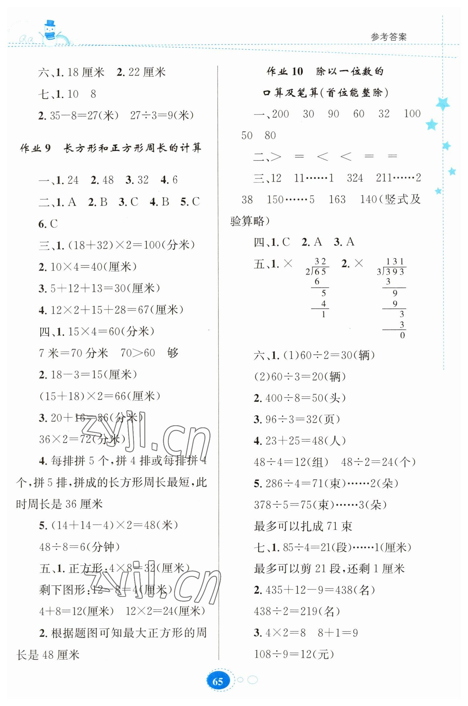 2023年寒假作业三年级数学苏教版贵州人民出版社