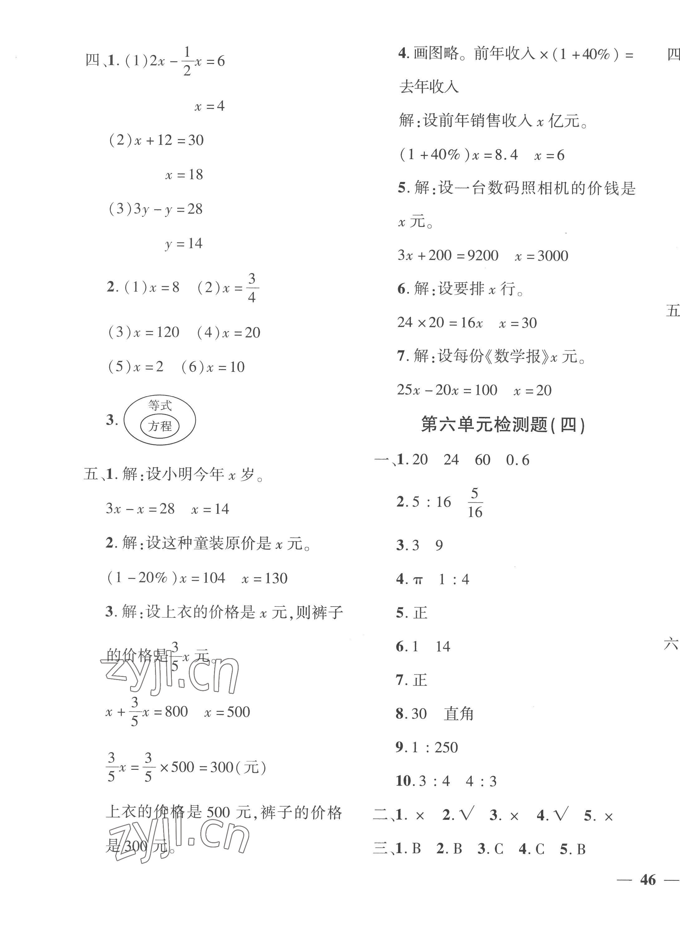 注:目前有些书本章节名称可能整理的还不是很完善,但都是按照顺序排列的,请同学们按照顺序仔细查找。练习册 2023年教育世家状元卷六年级数学下册人教版 答案主要是用来给同学们做完题方便对答案用的,请勿直接抄袭。