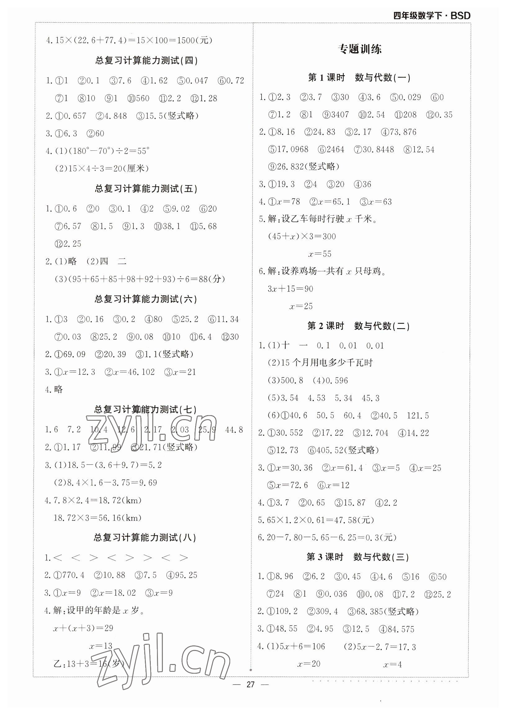 注:目前有些书本章节名称可能整理的还不是很完善,但都是按照顺序排列的,请同学们按照顺序仔细查找。练习册 2023年本真图书计算小达人四年级数学下册北师大版 答案主要是用来给同学们做完题方便对答案用的,请勿直接抄袭。