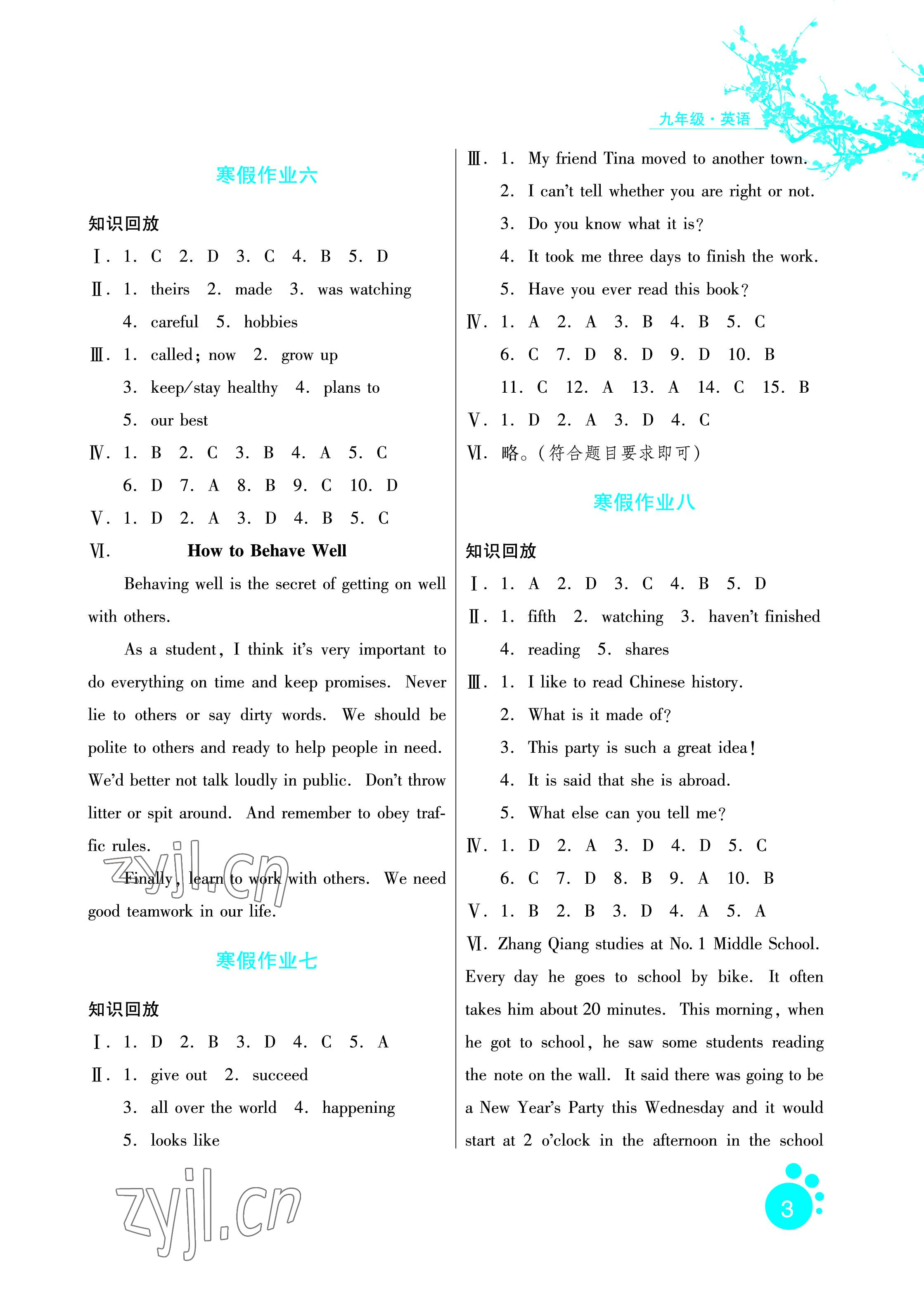 2023年寒假生活九年级英语通用版河北少年儿童出版社