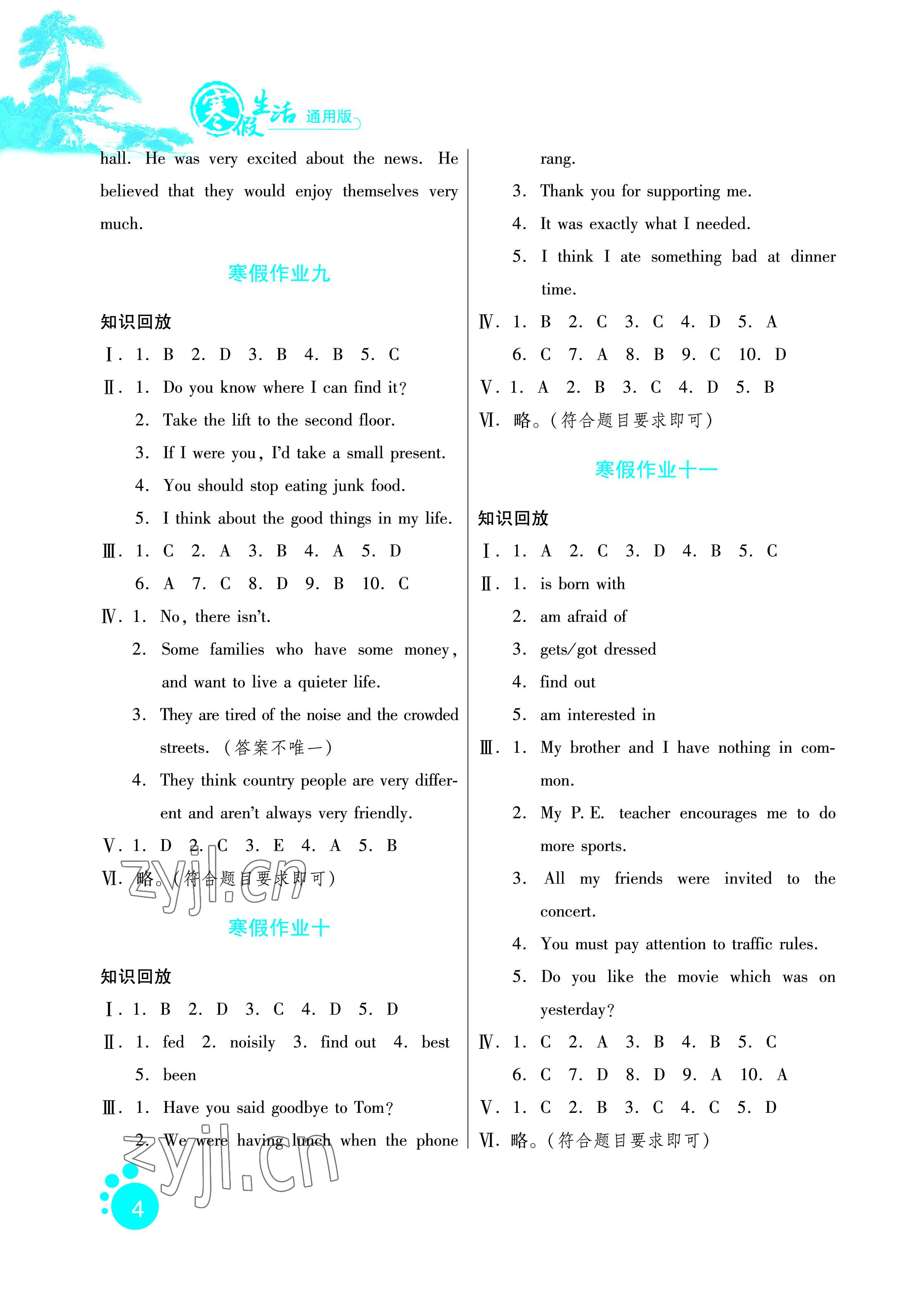 2023年寒假生活九年级英语通用版河北少年儿童出版社